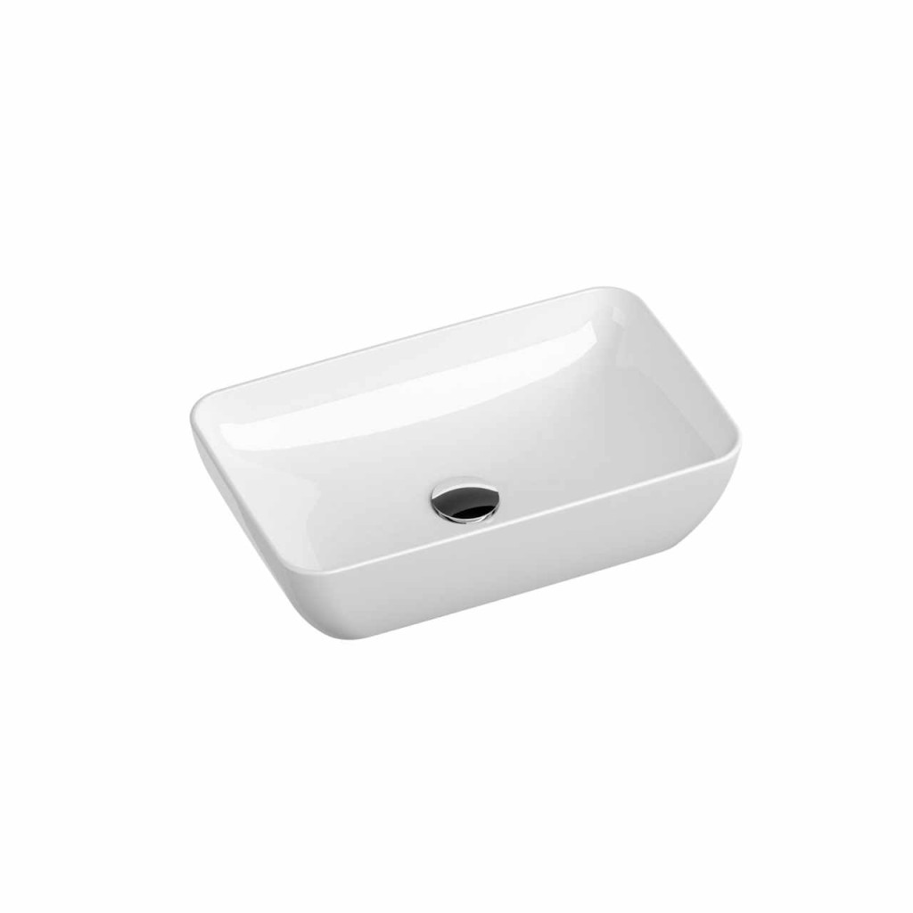 Kerámia Uni Slim mosdó, mely asztalra vagy szekrényre szerelhető, túlfolyó nélkül. Fehér színben.