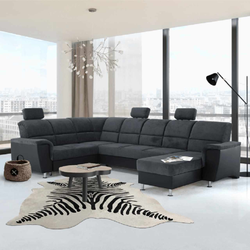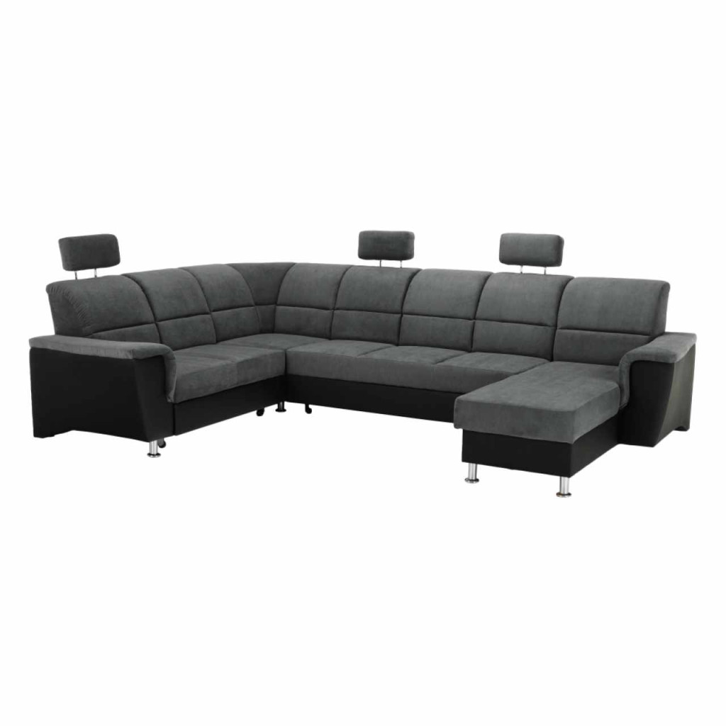 Ülőgarnitúra, bal oldali kivitel, fekete textilbőr/sötétszürke szövet, SANTIAGO U