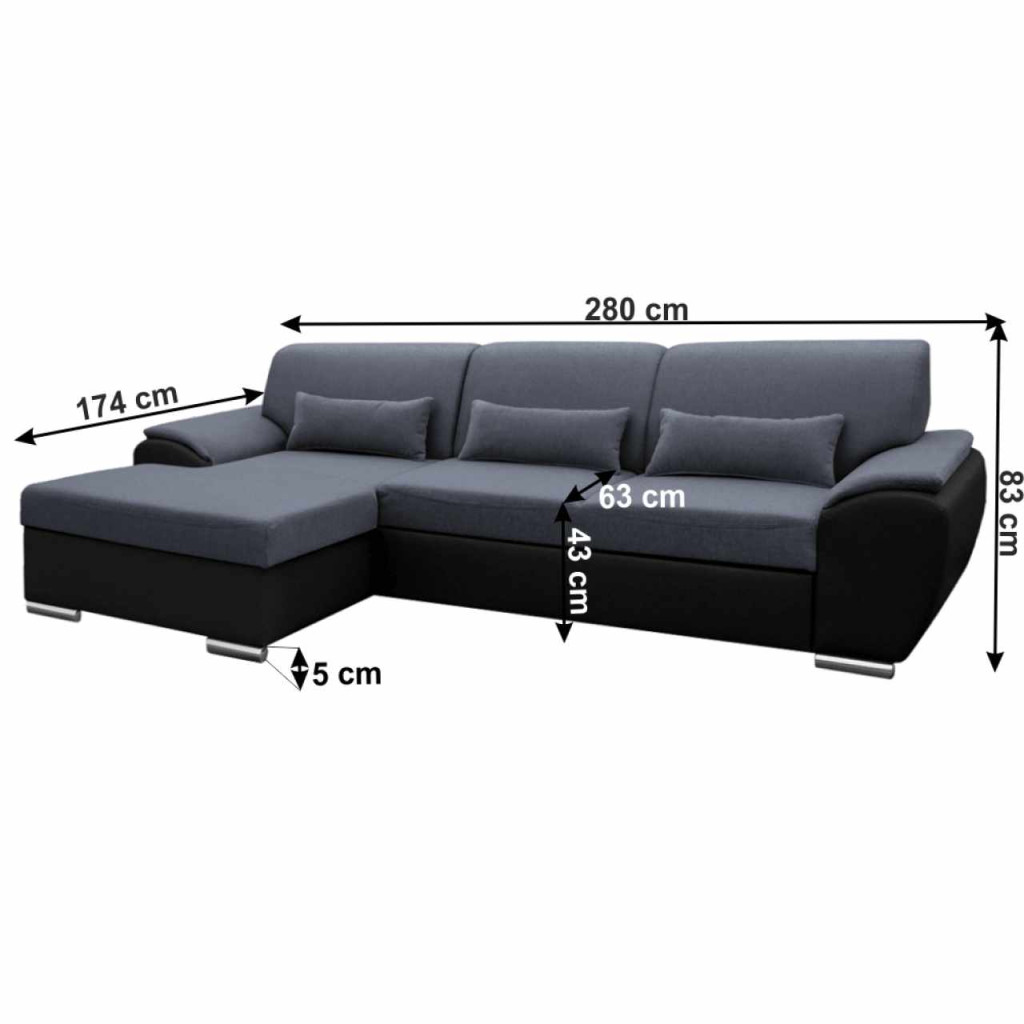 Kárpitozott sarokülőgarnitúra EMILY ROH MALÝ rakodótérrel, Balos változat, Anyag: textilbőr fekete / szövet Soro 97 sötét szürke,A szövet Soro kopásállósága: 90 000 - 100 000 Martindale A textilbőr kopásállósága: 100 000 MartindaleMéretek (SzéxMaxMé): 280x83x174 cm, fekvőterület (SzéxH):130x210 cm, az ülőrész magassága x mélysége: 43x63 cm.Az alsó tér magassága a padlótól: 5 cmTerhelhetőség ágyanként: 90 kgMegrendelhető a textilbőr 4 színváltozatában és a Soro szövet 6 színárnyalatában, ár 515 900 Ft. Elérhető szövet + ekobőr kombinációban vagy teljesen szövetből. Egyedi megrendelés esetén szükség van az adott összegnek a 20%-át befizetni,mint előleg. Az előleg befizetése után az Ön követelményét benyújtjuk a gyártónak. Szállítási idő: 6-8 hét.