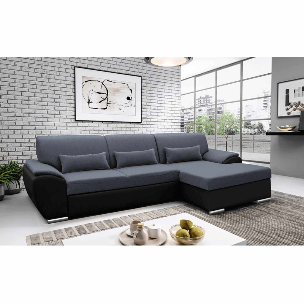 Ülőgarnitúra, fekete/sötét szürke, jobbos, EMILY ROH MALÝ