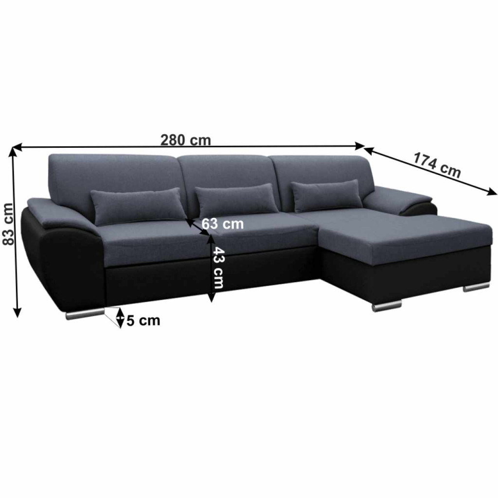 Kárpitozott sarokülőgarnitúra EMILY ROH MALÝ rakodótérrel, Jobbos változat, Anyag: textilbőr fekete / szövet Soro 97 sötét szürke,A szövet Soro kopásállósága: 90 000 - 100 000 Martindale A textilbőr kopásállósága: 100 000 MartindaleMéretek (SzéxMaxMé): 280x83x174 cm, fekvőterület (SzéxH):130x210 cm, az ülőrész magassága x mélysége: 43x63 cm.Az alsó tér magassága a padlótól: 5 cmTerhelhetőség ágyanként: 90 kgMegrendelhető a textilbőr 4 színváltozatában és a Soro szövet 6 színárnyalatában, ár 515 900 Ft. Elérhető szövet + ekobőr kombinációban vagy teljesen szövetből. Egyedi megrendelés esetén szükség van az adott összegnek a 20%-át befizetni,mint előleg. Az előleg befizetése után az Ön követelményét benyújtjuk a gyártónak. Szállítási idő: 6-8 hét.
