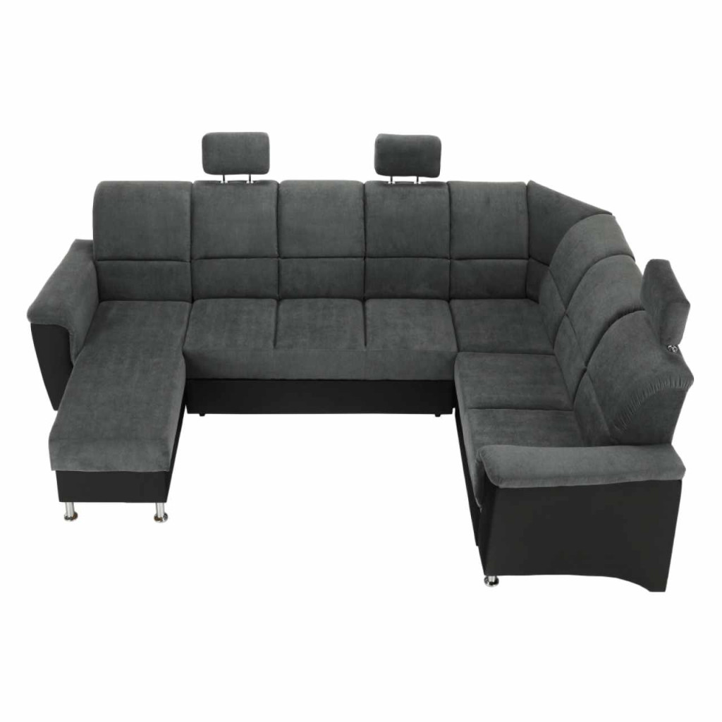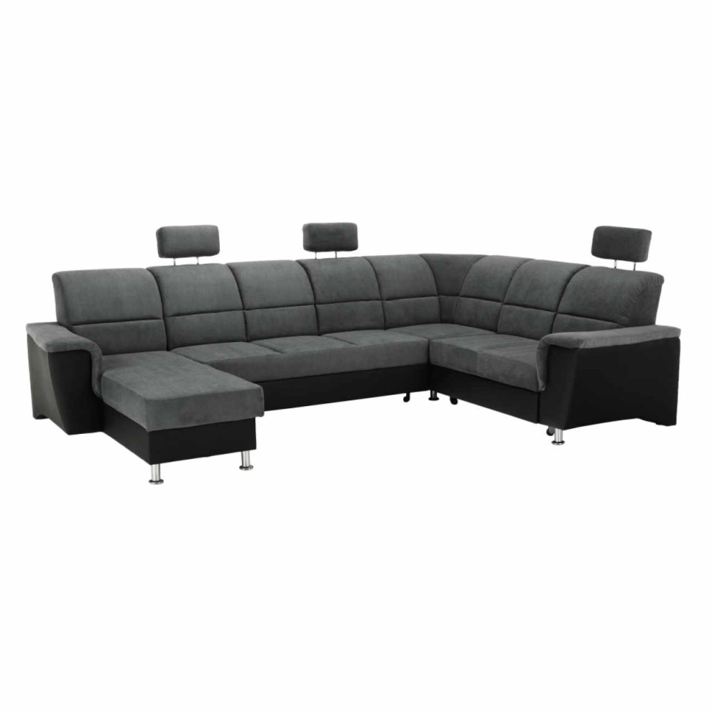 Ülőgarnitúra, jobb oldali kivitel, fekete textilbőr /szürke szövet, SANTIAGO U