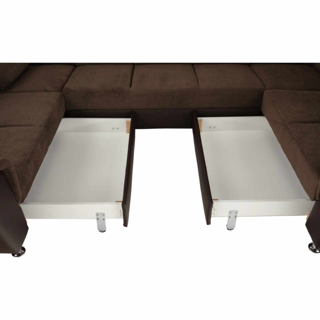 Anyag: textilbőr/szövetA szövet Matrix kopásállósága: 72 000 MartindaleA textilbőr kopásállósága: 100 000 MartindaleSzín: barna/Matrix 5 barnaMéretek: (SzéxMéxMa): 338x217/217x86/106 cmAlvófelület (SzéxH): 116x225 cmÜlés magassága: 41 cmÜlés mélysége: 53 cmTeherbírás: 90 kgHáttámla magassága: 55 cmAz alsó tér magassága a padlótól: 10 cmÜlőrész méretei: 150 cmU alakúTeljesen kárpitozottSzétnyithatóRakodótérrelBetét: falista rugó/pur habKinyitható manuálÁllítható fejtámlávalFelületén krómozott fém lábakkalJobbosTeherbírás: 90 kgSzállítás szétszerelveRendelhető 6 színváltozatban Matrix szövetből. Ár fotel: 194 900 Ft, puff: 64 900 Ft, ülőgarnitúra U: 821 900 Ft. Egyedi megrendelés esetén szükség van az adott összegnek a 20%-át befizetni,mint előleg. Az előleg befizetése után az Ön követelményét benyújtjuk a gyártónak. Szállítási idő 6-8 hét.