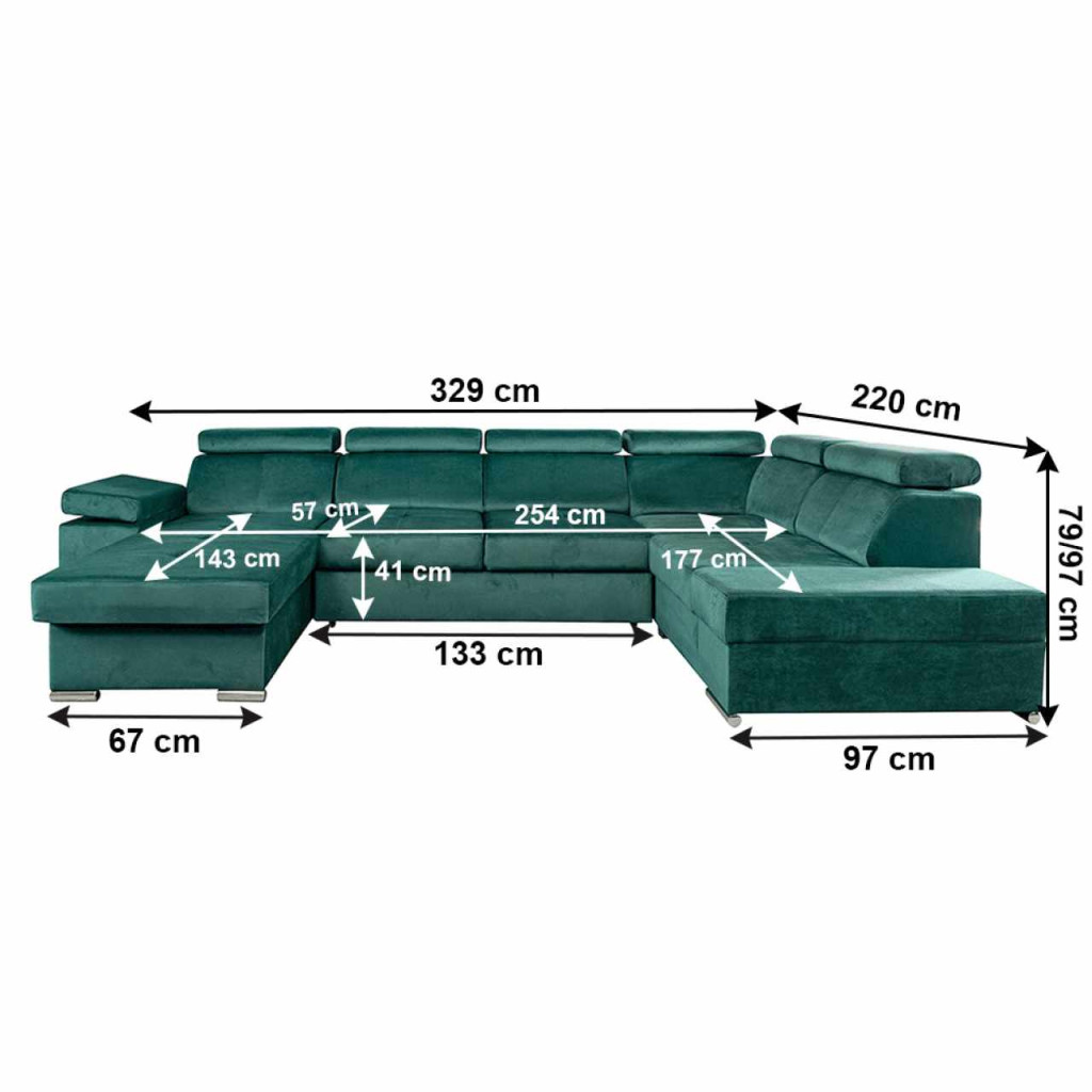 Anyag: KRONOS szövet A szövet kopásállósága a Martindale teszt szerint: 50 000 ciklus Szín: smaragd 19 Méretek: (SzxMéxMa): 333x220x79/97 cm Alvófelület méretei (SzéxHo): 256x129 cm Ülés mélysége: 57 cm Ülés magassága: 41 cm Az alsó tér magassága a padlótól: 4,5 cm A ottománok közötti szabad tér szélessége: 133 cm6 állítható fejtámla 5 fokozatban állítható támlák 1 pozicionálható kartámasz Tárhellyel Teljesen kárpitozott Exkluzív és modern megjelenés Balos kivitelezés Ülés töltete: rugós falista és pur hab T30KG/m3, hab vastagsága 10 cm Háttámla töltete: rugalmas szalagok és pur hab T25/m3, hab vastagsága 7 cm A csomag a dekoratív párnákat nem tartalmazza Bontásban szállítvaMegrendelhető 6 féle Kronos szövetben ár 731 900 Ft. Egyedi megrendelés esetén 20% előleg fizetése szükséges az adott összegből. Az előleg kifizetése után a megrendelését gyártásra bocsátjuk. Szállítási idő 6-8 hét.