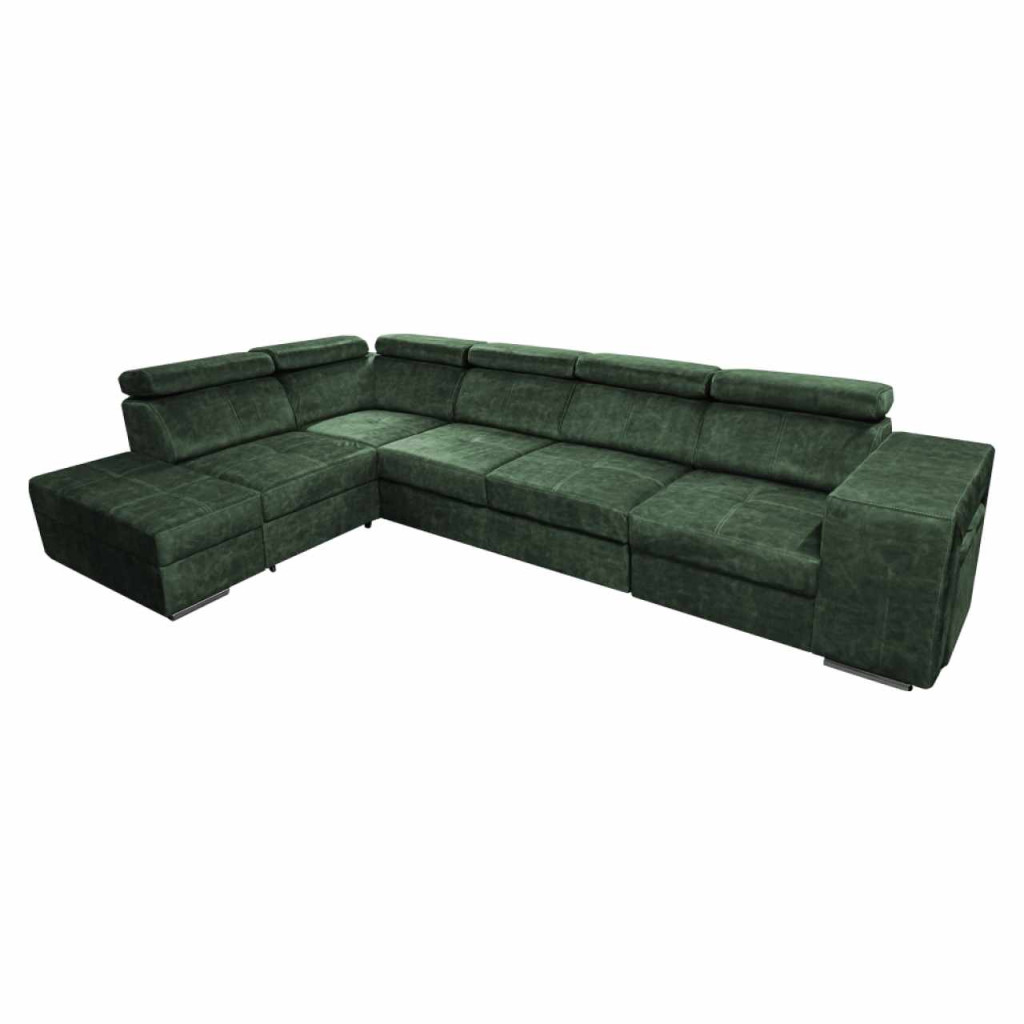 Kárpit anyaga: Country 11 szövetA szövet kopásállósága a Martindale teszt szerint: 65 000 kopásSzín: smaragdzöldSzerkezet anyaga: fenyőfa/bükkfa/laminált lapMéretek (SzxMéxMa): 334x210x79/97 cmAlvófelület (SzxHo): 130x190 cmÜlés magassága: 43 cmÜlés mélysége: 56 cmOttomán méretei (SzxMé): 97x165 cmMéretek kartámlákkal (SzxMéxMa): 30x97x58 cmZsámollyalZsámoly méretei (SzxMéxMa): 40x33x48 cmTeljesen kárpitozottKihúzhatóSarokTárhellyelBalos változatLábakonLábak színe: krómAz alsó rész magassága a padlótól: 4,5 cmÁllítható fejtámlák5 fokozatban állítható támlákTöltet: falista rugó/purhab/molitánSzétszerelve szállítvaMegrendelhető a Country szövet 8 színárnyalatban ár: 722 500 Ft. a szállítási idő 6-8 hét. Egyedi rendelés esetén a teljes összeg 20%-át előlegként szükséges befizetni. Az előleg kifizetése után a rendelése feldolgozásra kerül.