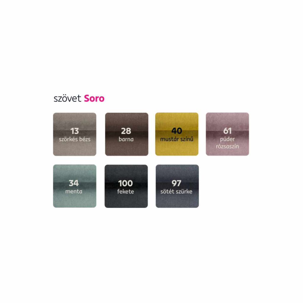 Anyag: szövet Soro 95/40A szövet kopásállósága a Martindale teszt szerint: 90 000 - 100 000 ciklusSzín: szürkésbarna/sárgaMéretek (SzxMéxMa): 310x185x72 cmÜlés magassága: 37 cmÜlés mélysége párnákkal: 55 cmÜlés mélysége párnák nélkül: 83 cmSzétnyithatóAlvófelület (SzéxMé:) 135x240 cmAz alsó tér magassága a padlótól: 5 cmTeherbírás: 90 kgÜlőrész töltete: falista rugó/purhabBalos kivitelezésTeljesen kárpitozottTárolóhellyelHárom párnával szállítvaA díszpárnák a csomag részeiSzétszerelve szállítvaA kanapét a Soro szövet 7 színváltozatában megvásárolhatja a mintafüzet alapján 561 900 Ft áron. Választását közvetlenül a megrendelés megjegyzései közé írja be. Egyedi megrendelés esetén az adott összeg 20%-át előlegként szükséges befizetni. Az előleg befizetése után a kérése gyártásba kerül. A szállítási idő 6-8 hét.