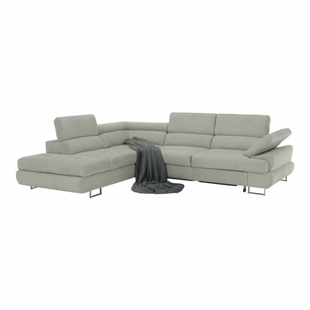 Ülőgarnitúra tárolóhellyel, világosszürke, szövet, balos, BUTON R , Szürke , Szövet