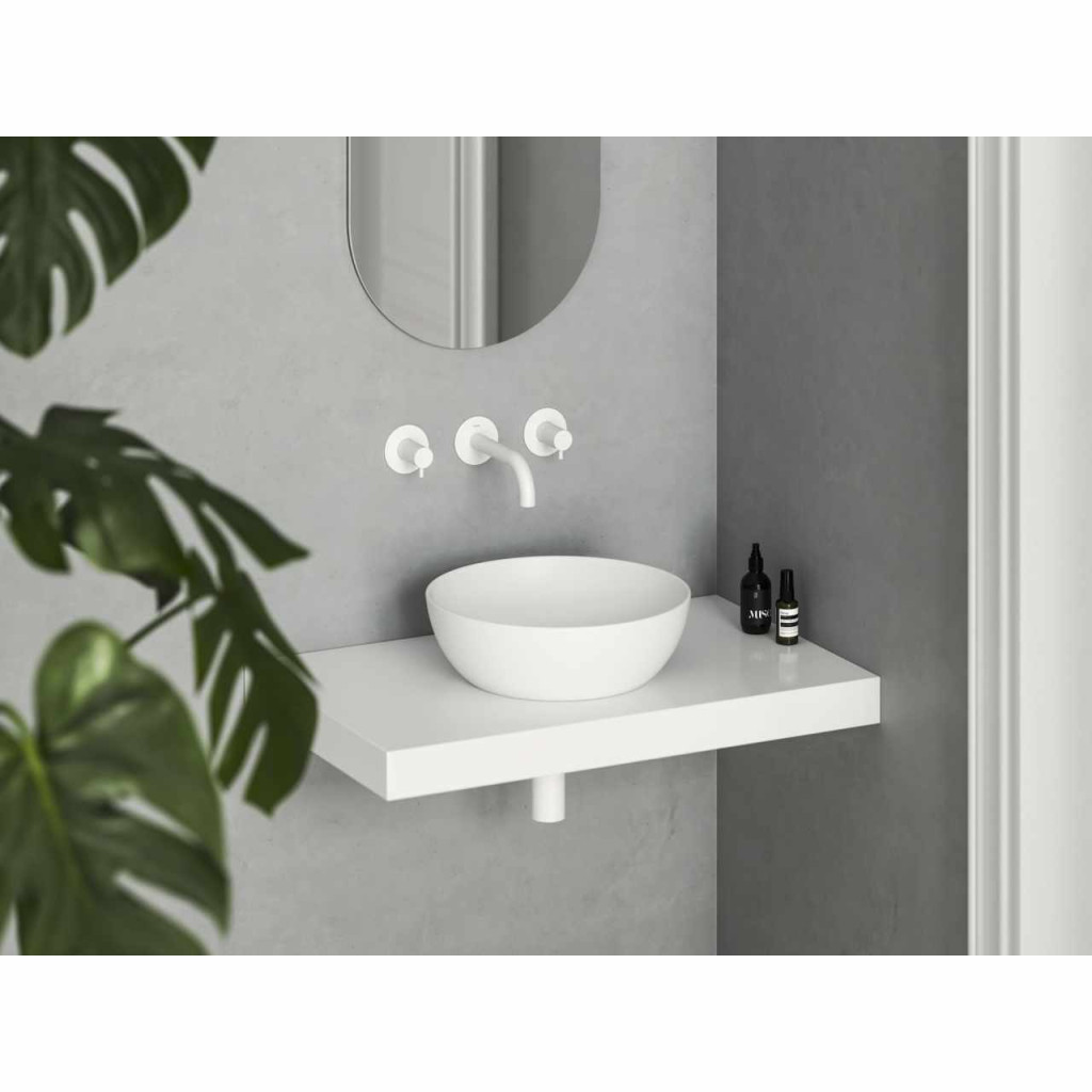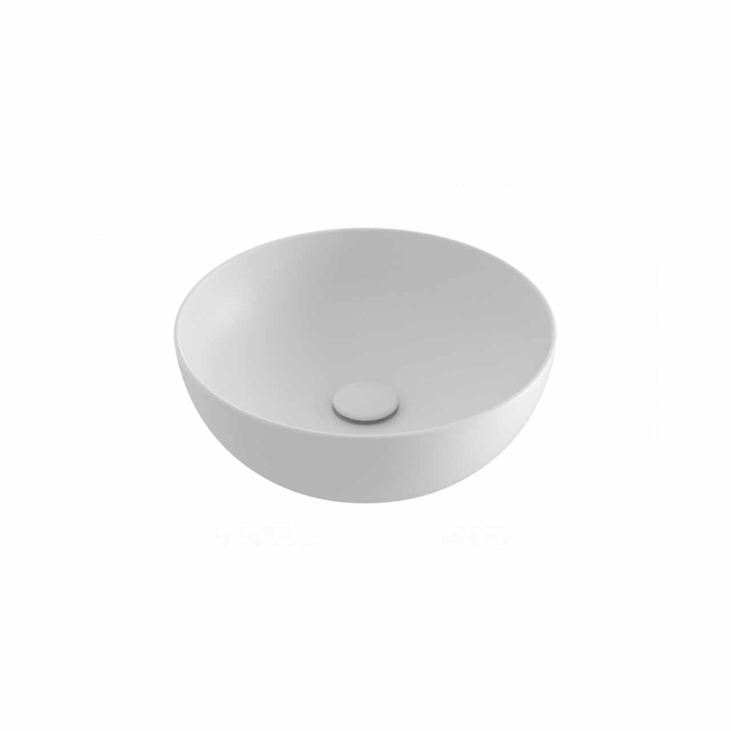 Kerámia Uni Slim mosdó, mely asztalra vagy szekrényre szerelhető, túlfolyó nélkül. Matt fehér színben.