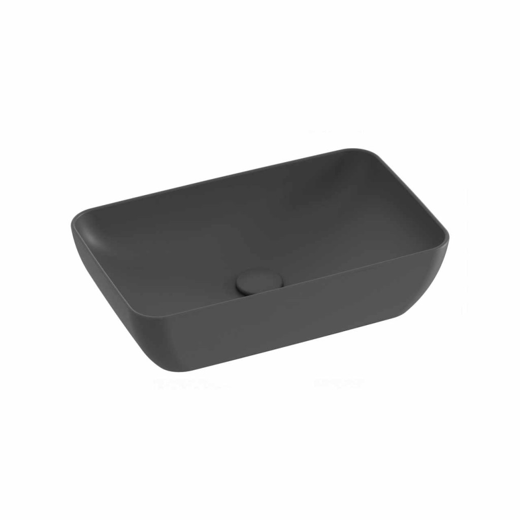 Vékonyfalú kerámia mosdó Uni Slim, asztalra vagy szekrényre szerelhető, túlfolyó nélkül. Antracit kivitelben.