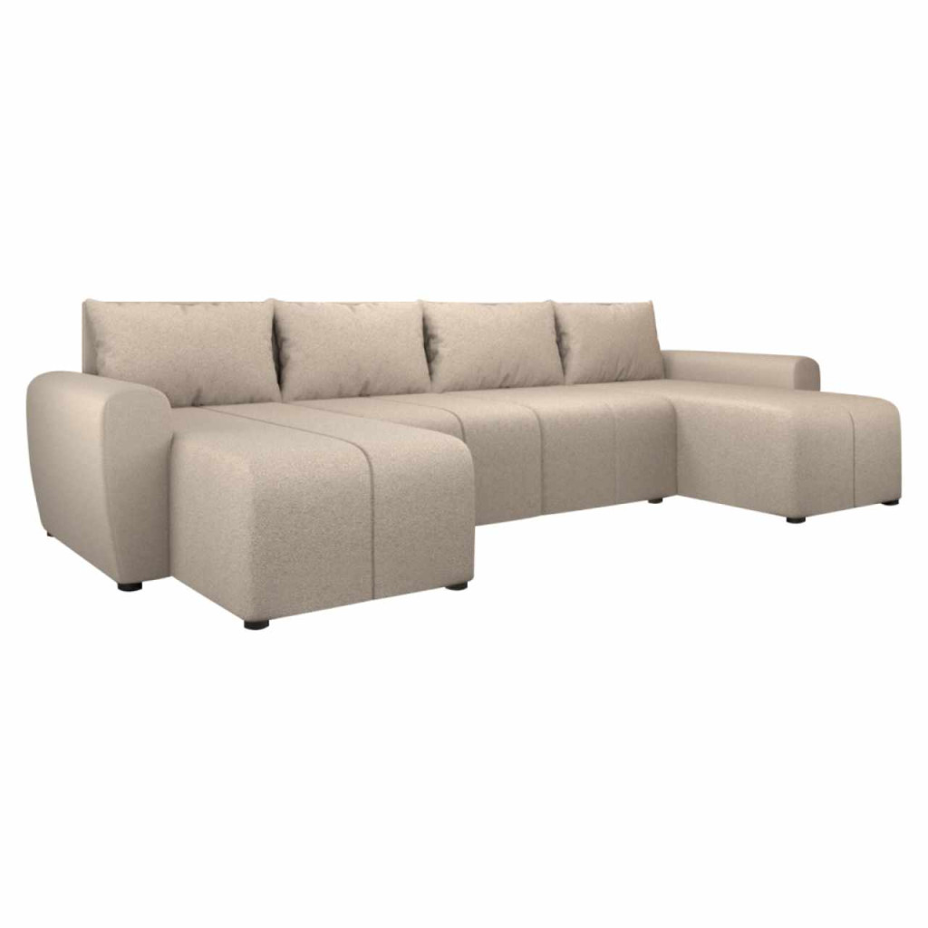 Anyag: Soro szövet 21A szövet kopásállósága Martindale teszt szerint: 90 000 kopásSzín: bézsMéretek (SzxMéxMa): 307x138/138x73/82 cmKinyithatóAlvófelület (SzxHo): 108x265 cmÜlés magassága: 39 cmÜlés mélysége: 45/65 cmÜlőrész szélessége: 131 cmLábakonLábak anyaga: műanyagLábak színe: feketeAz alsó rész magassága a padlótól: 2,5 cmTöltet: PUR hab T28Univerzális változatU alakSarokTárhellyelPárnákkal szállítvaHáttámla párna méretei (SzxMa): 65x45 cmDekoratívan steppeltSzétszerelve szállítva