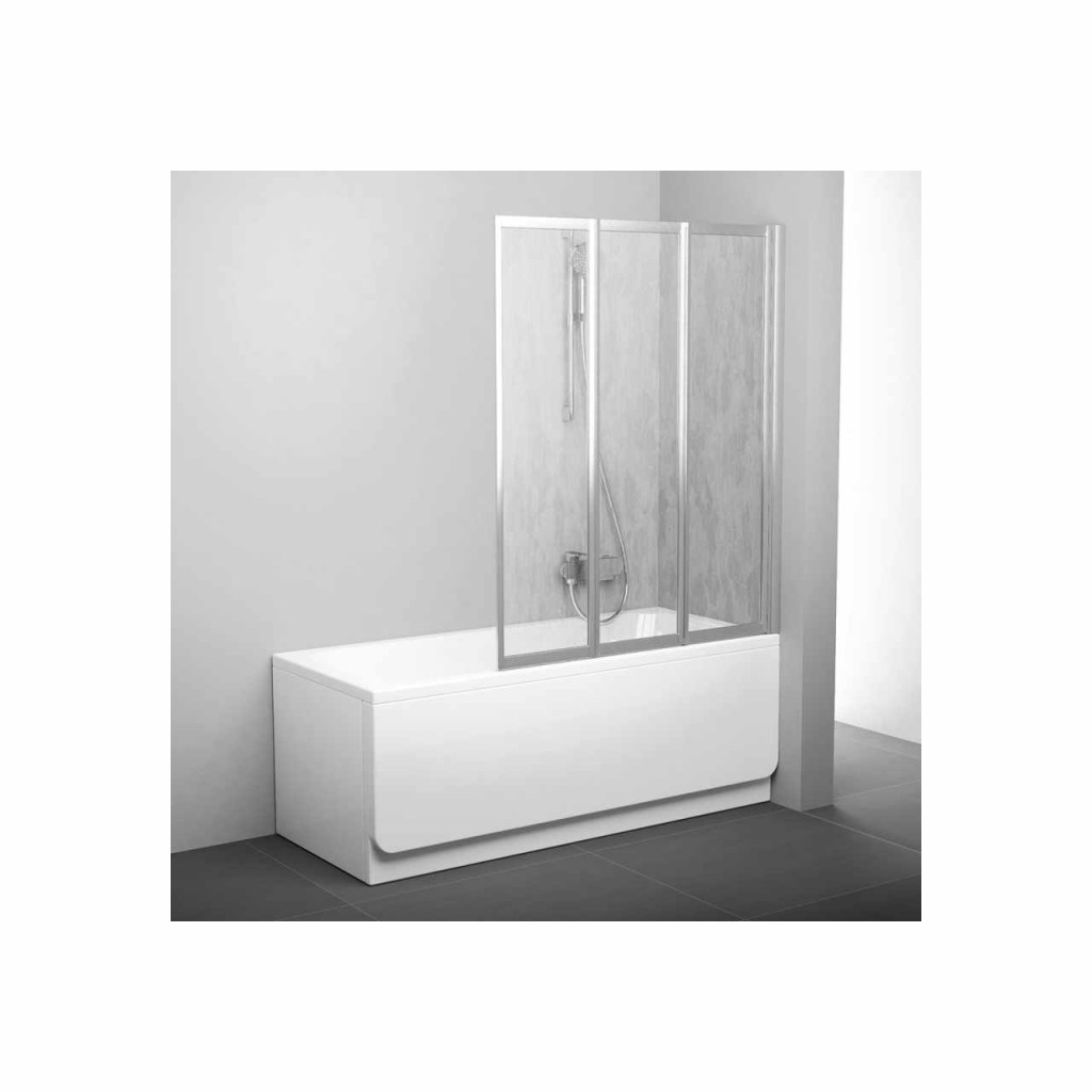 Háromrészes összecsukható kádzáró az aszimmetrikus BeHappy II kádra és a téglalap alakú kádakra. Matt króm kivitelben, átlátszatlan műanyag betéttel, Rain dekorációval. Forgatható termék bal és jobb változatban.