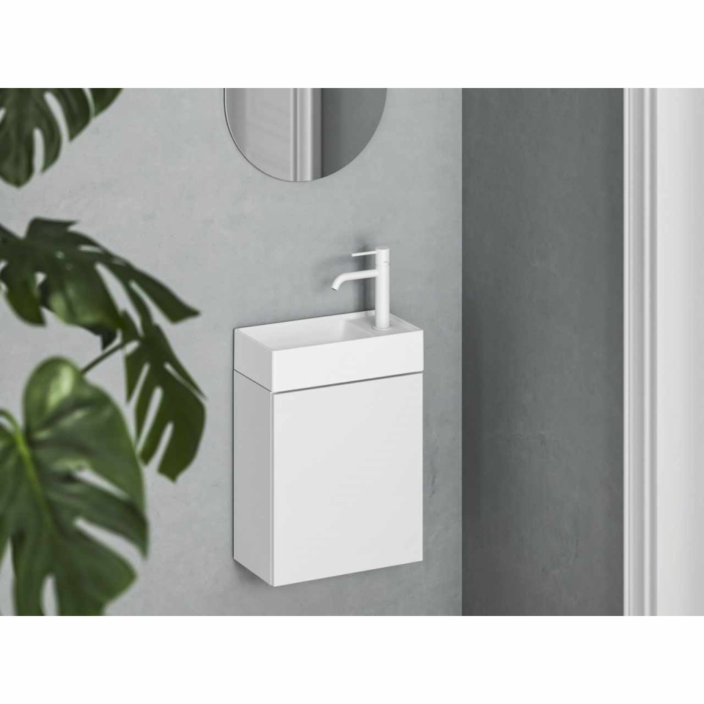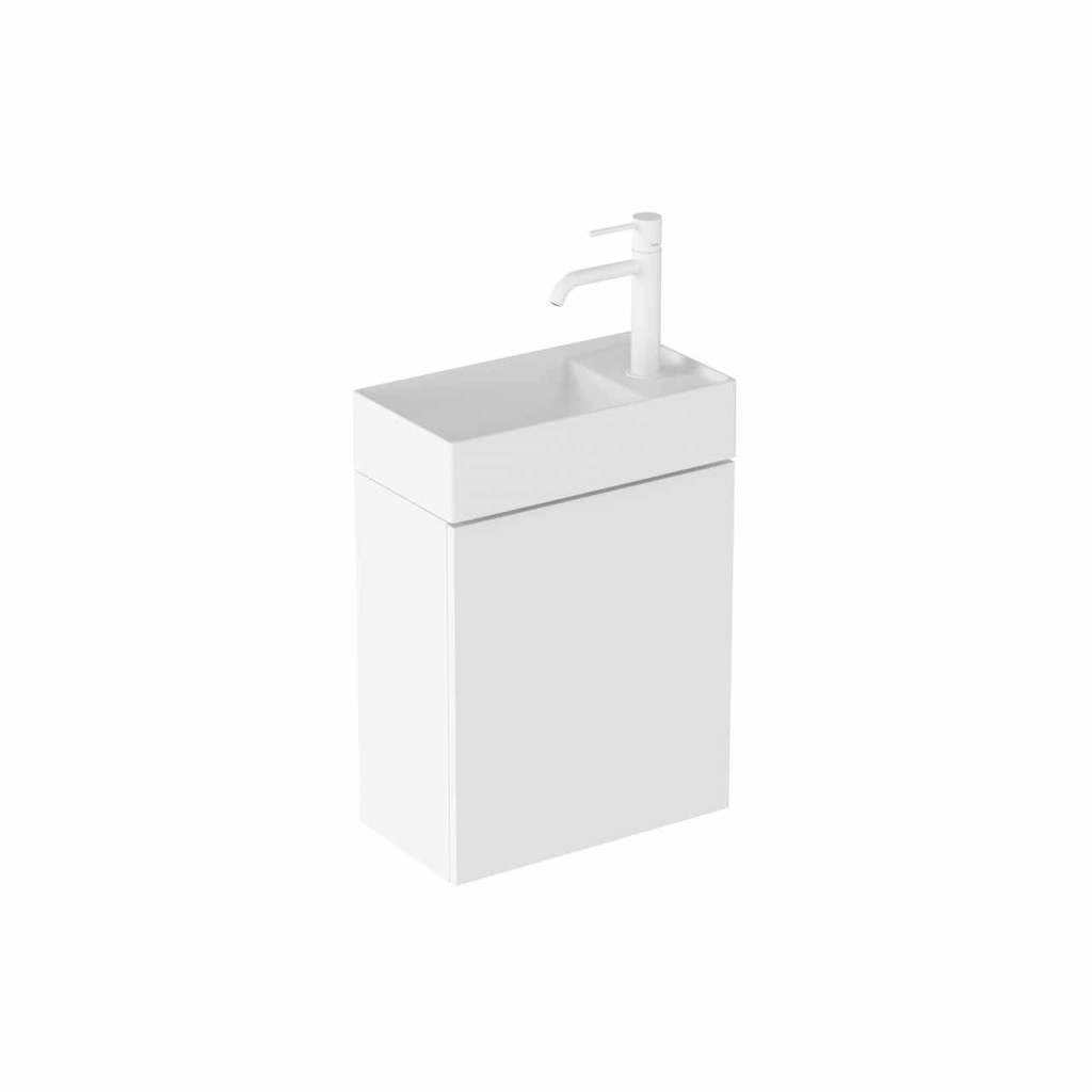 Vékony falú kerámia mosdó Veda Slim, függesztett szekrénybe süllyeszthető, túlfolyó nélkül. Matt fehér kivitelben.
