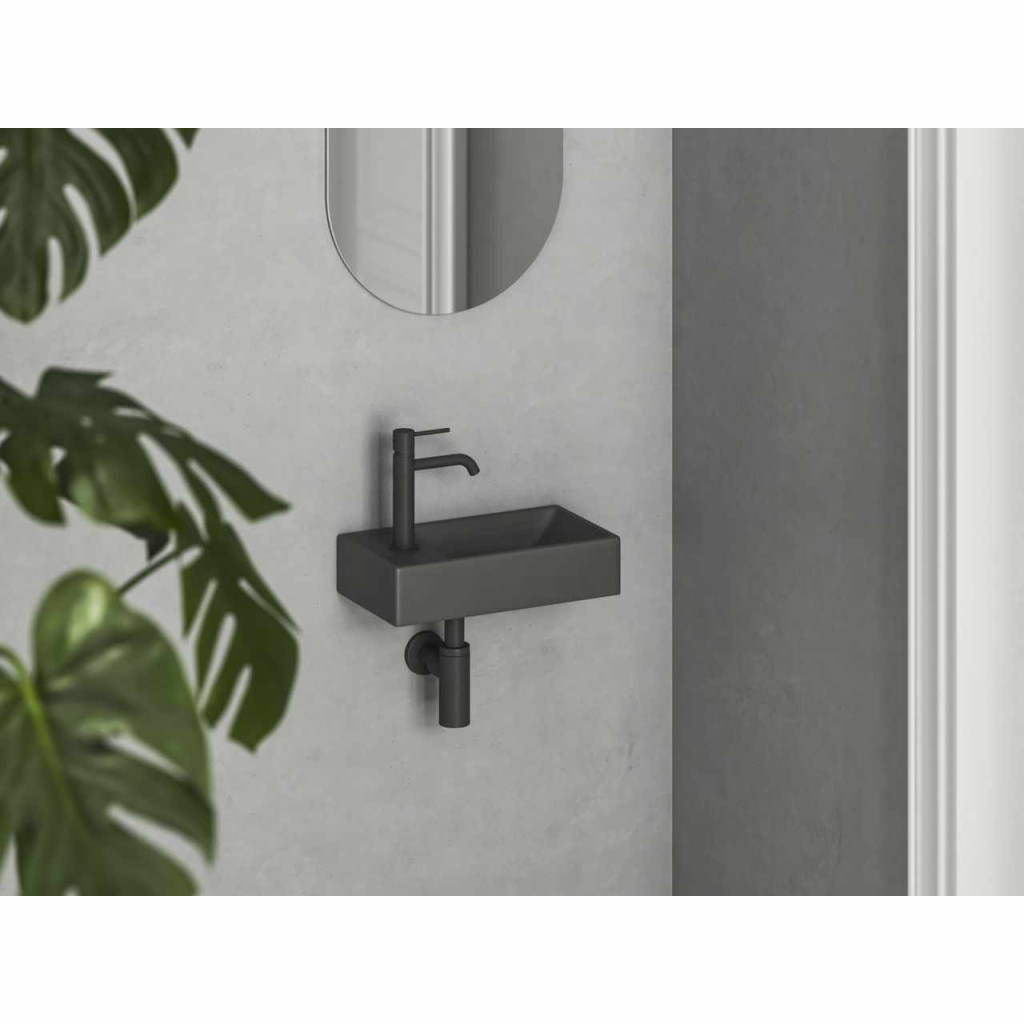 Kerámia mosdó Veda Wall, és falra kizárólag szerelhető, túlfolyó nélkül. Antracit kivitelben. Balos változat.