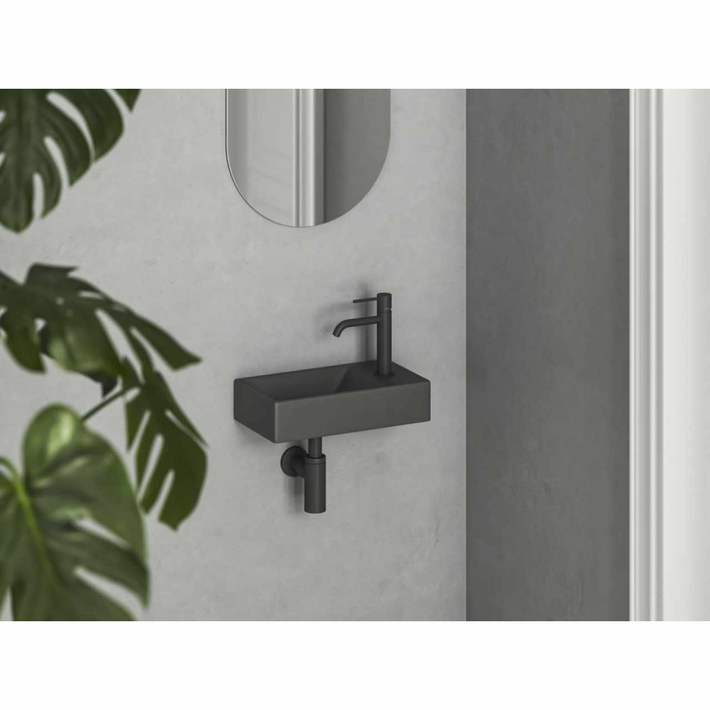 Kerámia mosdó Veda Wall, és falra kizárólag szerelhető, túlfolyó nélkül. Antracit kivitelben. Jobbos változat.