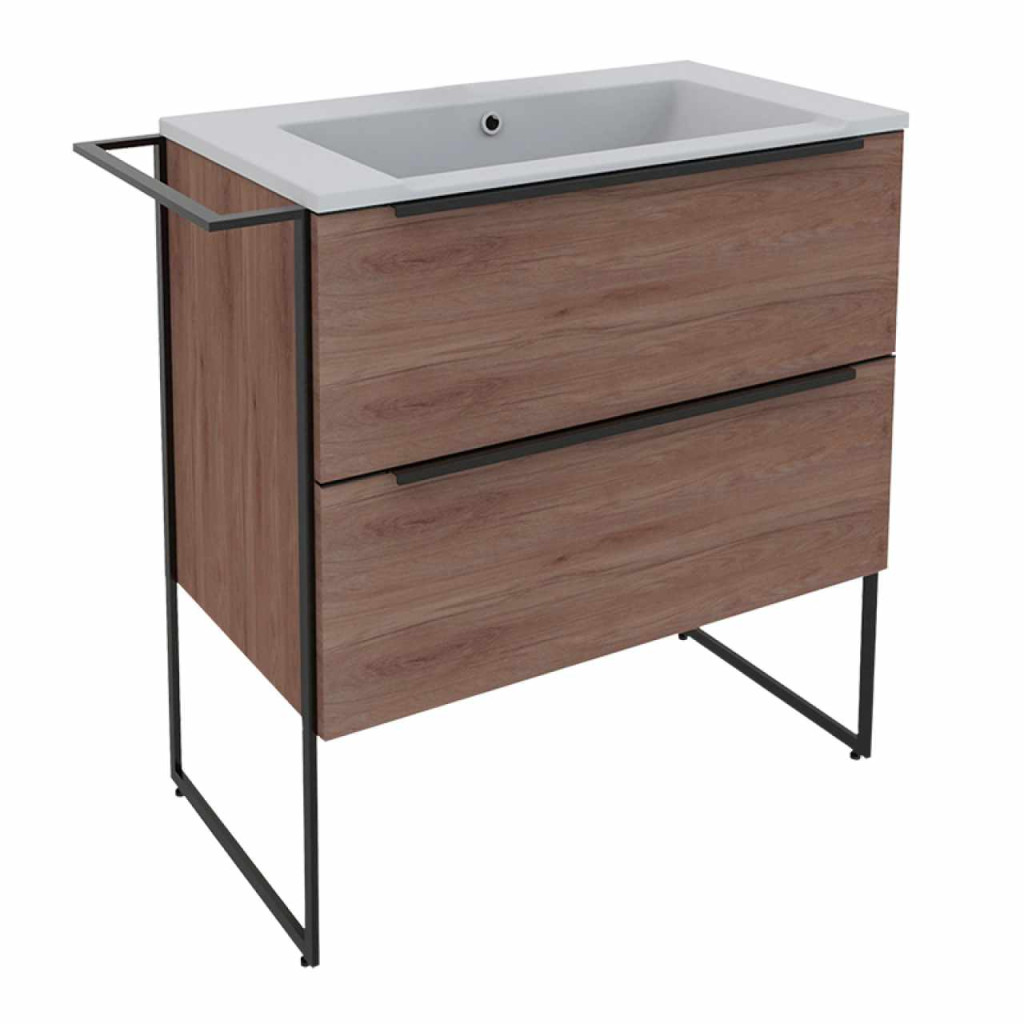 A Jersey fürdőszobabútorral pillanatok alatt mediterrán hangulatot teremthet otthonába. A melamin dió felület és a matt fekete lábak és fogantyúk együttesen kellemes látványt biztosítanak, valamint melegséggel töltik meg fürdőszobáját. A soft closing technikának köszönhetően a fiókok csendesen és finoman záródnak, jelentősen növelve a bútor élettartamát.Mosdókagyló és csaptelep nélkül!