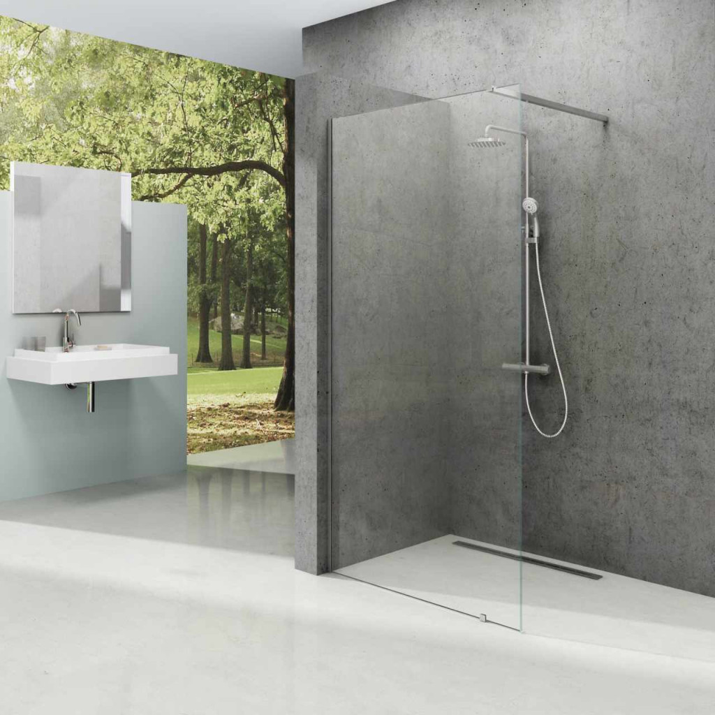 A Walk-In Wall zuhanykabin 8 mm vastag edzett biztonsági üvegből áll. A termék stabilitását egy fém merevítő biztosítja, amely meghatározza a belépés szélességét. A Walk-In Wall zuhanykabin fényes krómozott fém alkatrészekkel rendelkezik. Javasoljuk burkolt fürdőszoba sarokba történő telepítését, közvetlenül a padlóra, beépített padlóösszefolyóval vagy zuhanyfolyókával. A zuhanykabin univerzális, a beszereléskor választható jobb vagy bal oldali belépés. A csomag tartalmaz egy fix üvegfalat beállító profilt, fényes króm kivitelben.