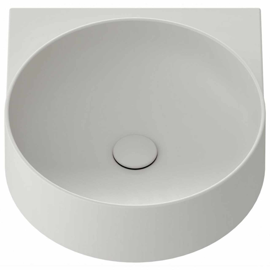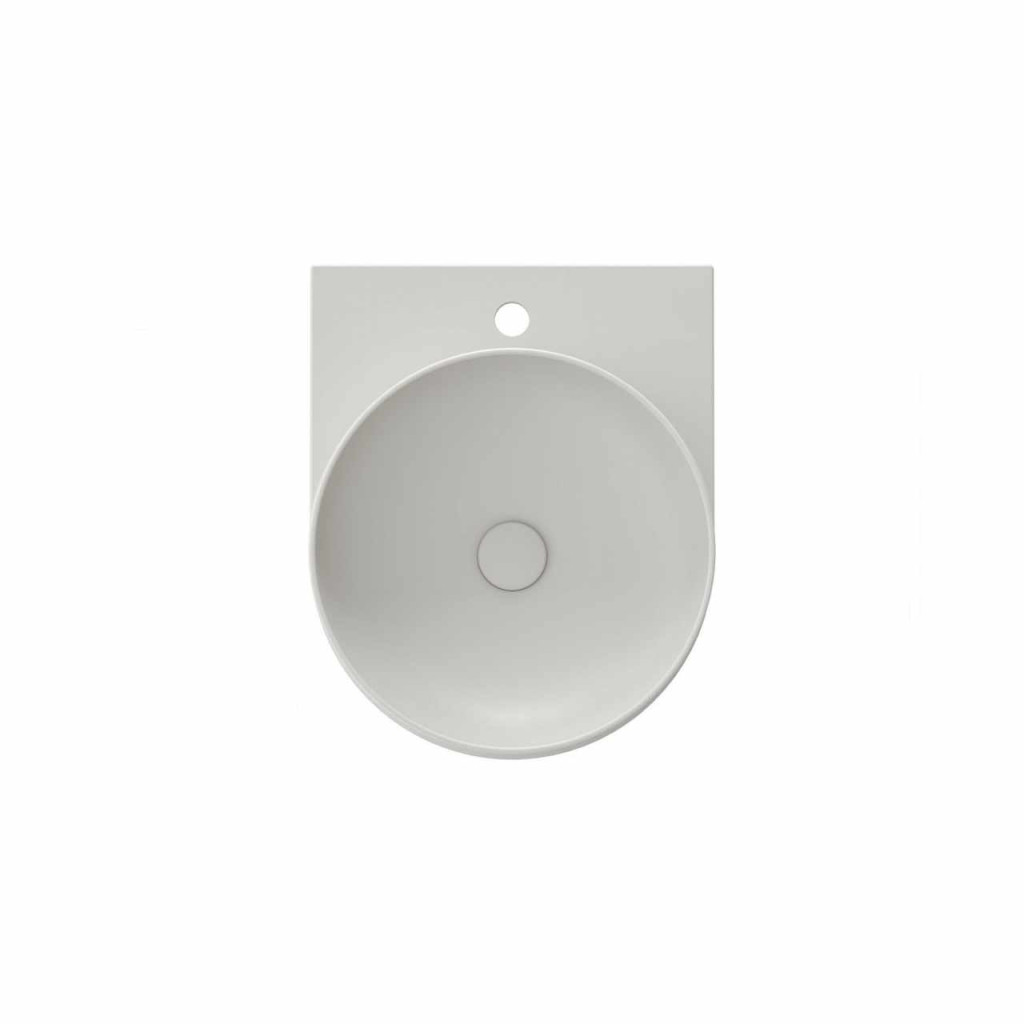 Vékonyfalú kerámia Yard mosdó a Yard konzolhoz vagy a CS Yard 40 mosdó alatti szerkezetre szerelhető, amely nyitott polcos bútordarabként szolgál, túlfolyó nélkül. Smoke Grey kivitel. Lyukkal álló csaptelephez.