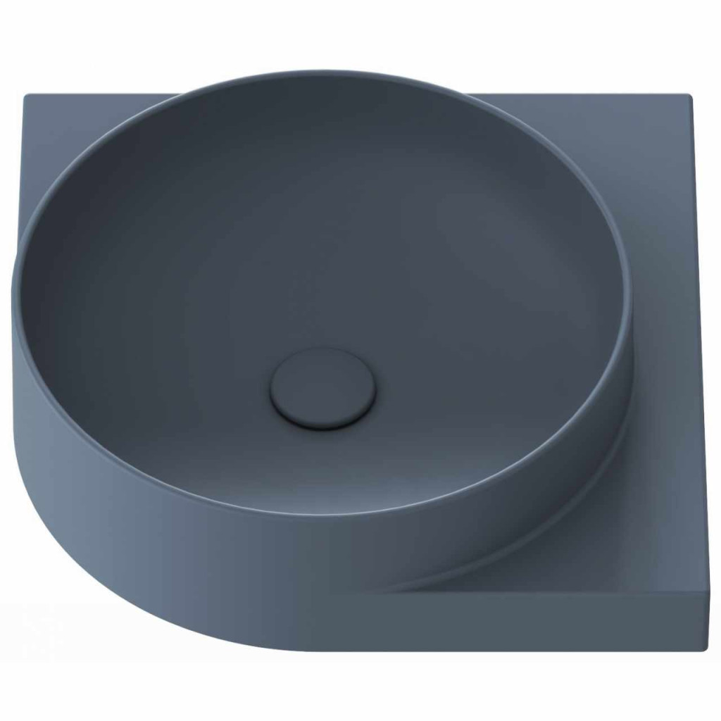 Vékonyfalú kerámia sarokmosdó Yard, Yard konzolra szerelhető, túlfolyó nélkül. Deepsea Blue kivitelben. Lyuk nélkül - falba süllyesztett mosdócsapteleppel kombinálható.