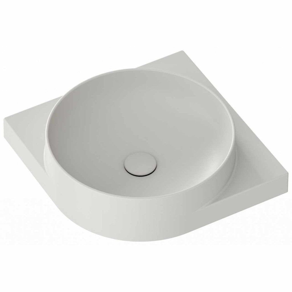 Vékonyfalú kerámia sarokmosdó Yard, Yard konzolra szerelhető, túlfolyó nélkül. Smoke Grey kivitelben. Lyuk nélkül - falba süllyesztett mosdócsapteleppel kombinálható.