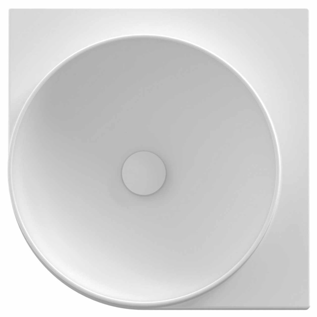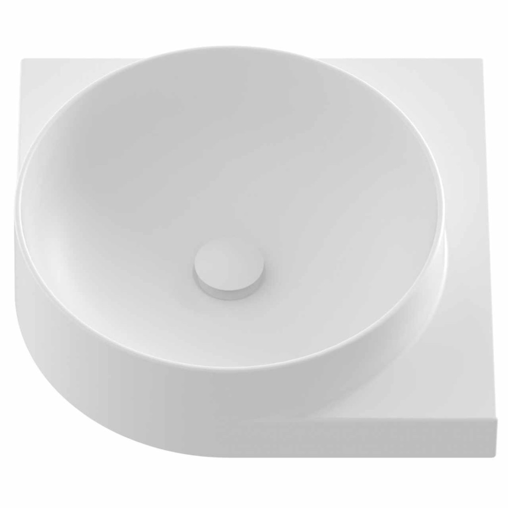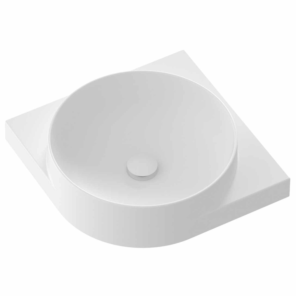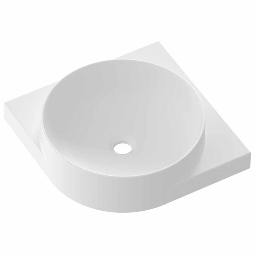 Vékonyfalú kerámia sarokmosdó Yard, Yard konzolra szerelhető, túlfolyó nélkül. Matt fehér kivitelben. Lyuk nélkül - falba süllyesztett mosdócsapteleppel kombinálható.