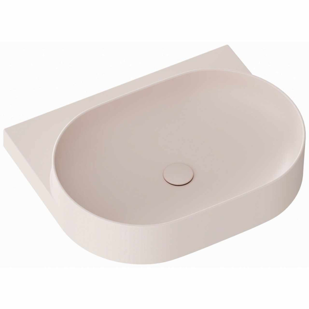 Vékonyfalú kerámia Yard mosdó a Yard konzolhoz vagy a CS Yard 60 mosdó alatti szerkezetre szerelhető, túlfolyó nélkül. Alabaster Pink kivitel. Lyukkal álló csaptelephez.