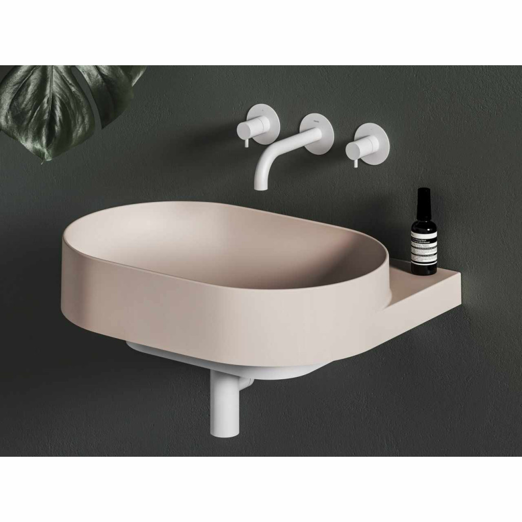 Vékonyfalú kerámia Yard mosdó a Yard konzolhoz vagy a CS Yard 60 mosdó alatti szerkezetre szerelhető, túlfolyó nélkül. Alabaster Pink kivitelben. Lyuk nélkül - beépített mosdócsaptelep kombinációjához.