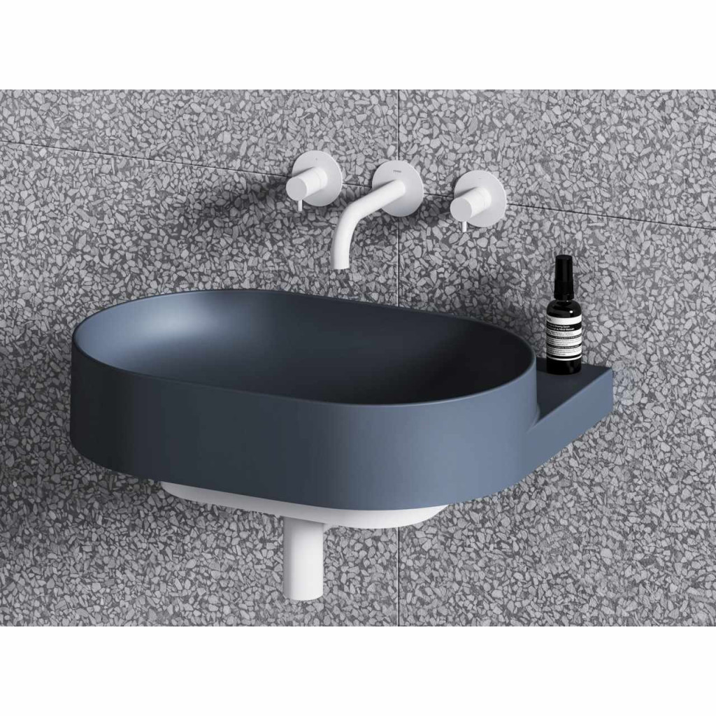 Vékonyfalú kerámia Yard mosdó a Yard konzolhoz vagy a CS Yard 60 mosdó alatti szerkezetre szerelhető, túlfolyó nélkül. Deepsea Blue kivitelben. Lyuk nélkül - beépített mosdócsaptelep kombinációjához.