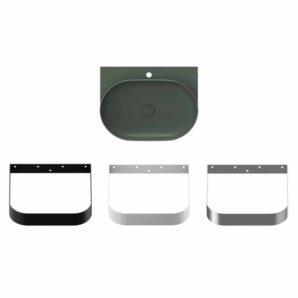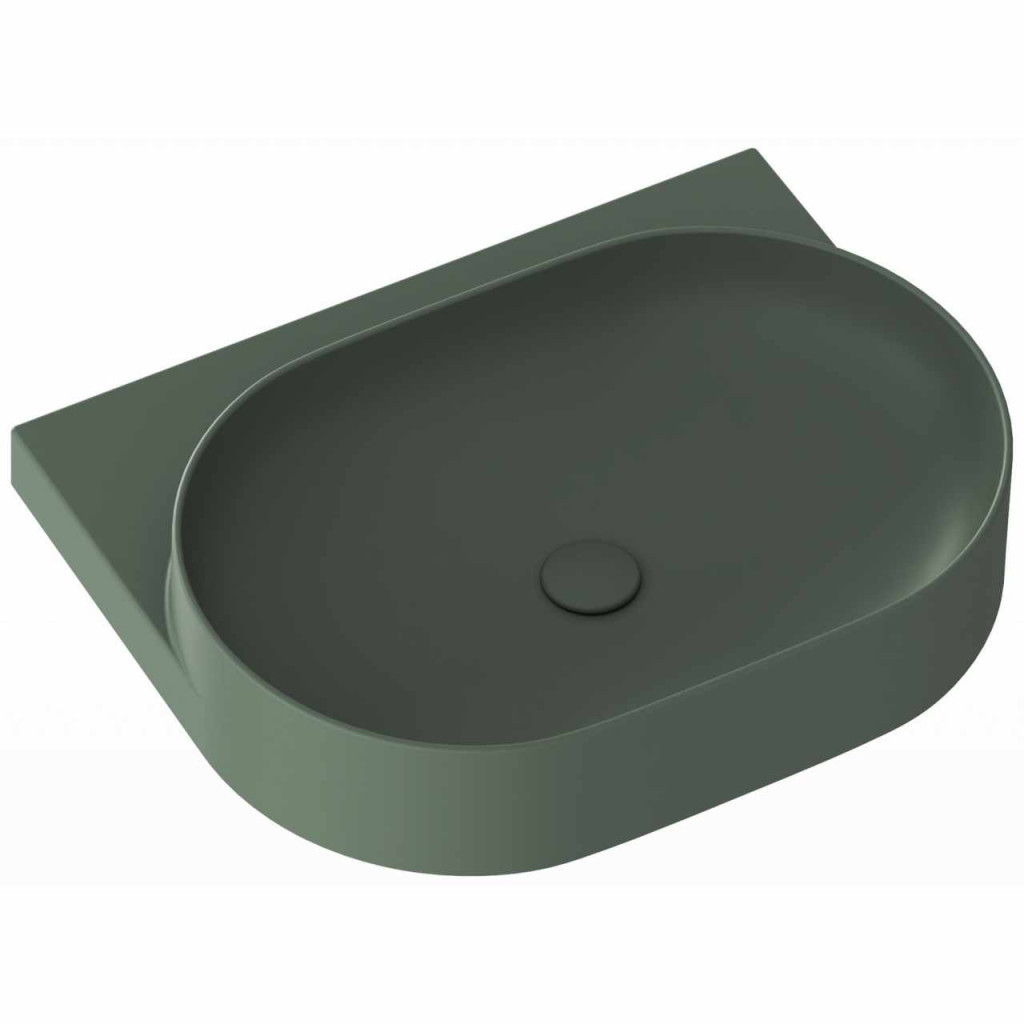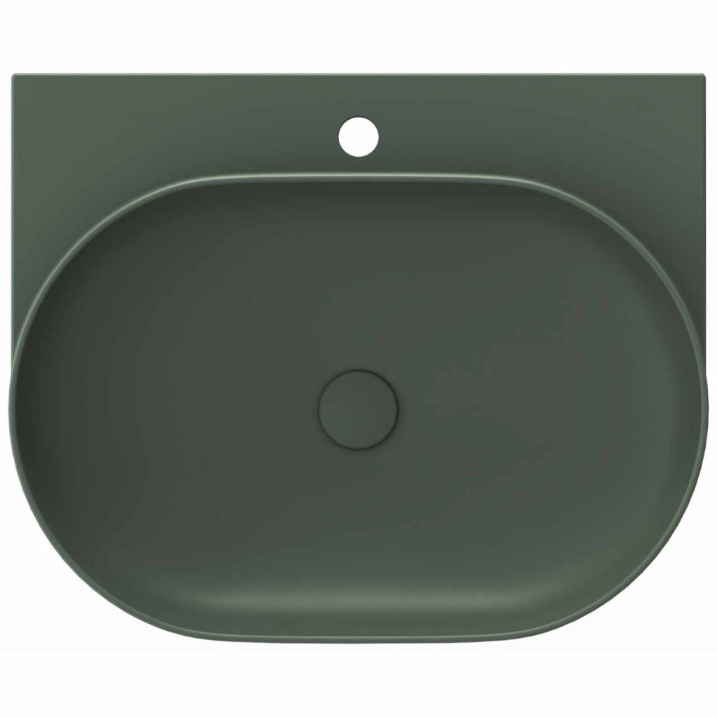 Vékonyfalú kerámia Yard mosdó a Yard konzolhoz vagy a CS Yard 60 mosdó alatti szerkezetre szerelhető, túlfolyó nélkül. Grey Green kivitel. Lyukkal álló csaptelephez.