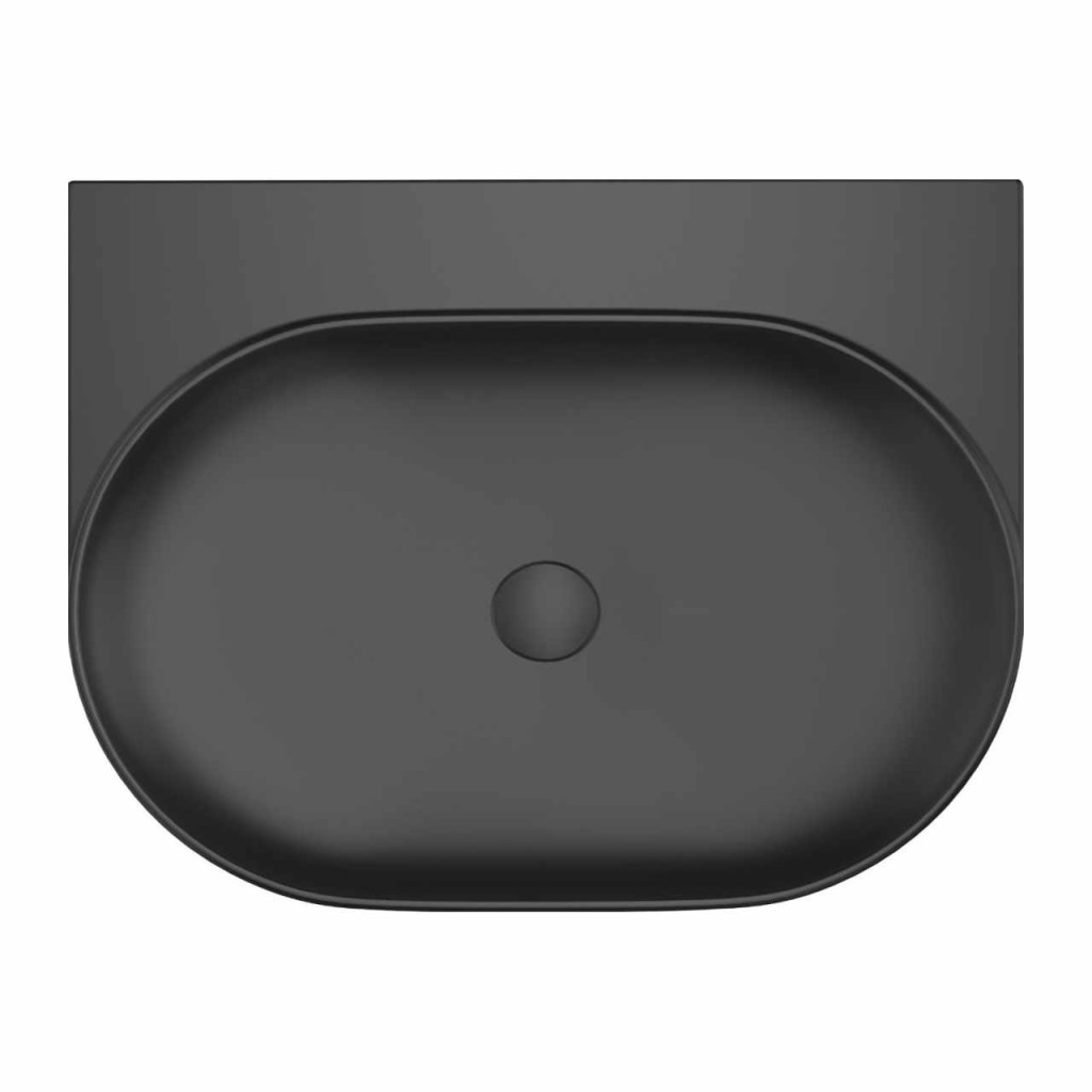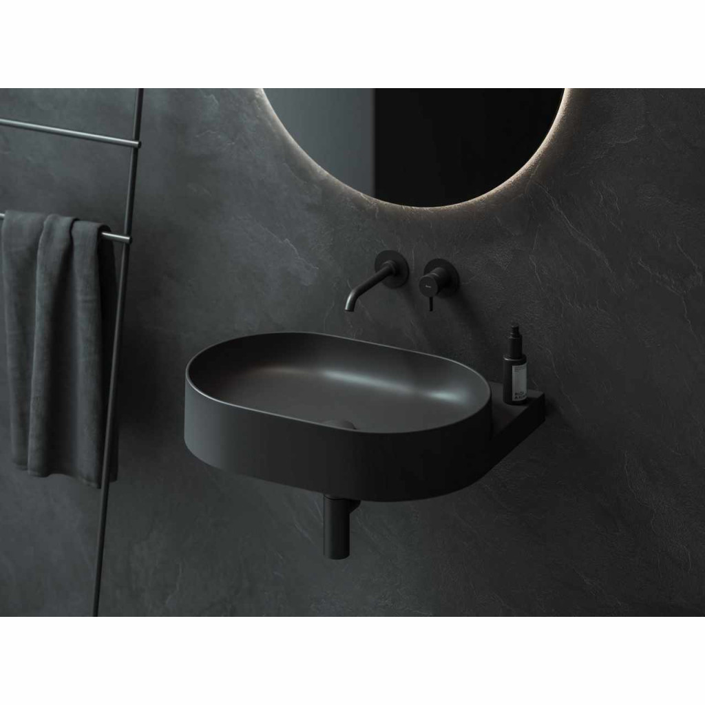 Vékonyfalú kerámia Yard mosdó a Yard konzolhoz vagy a CS Yard 60 mosdó alatti szerkezetre szerelhető, túlfolyó nélkül. Matt fekete kivitelben. Lyuk nélkül - beépített mosdócsaptelep kombinációjához.