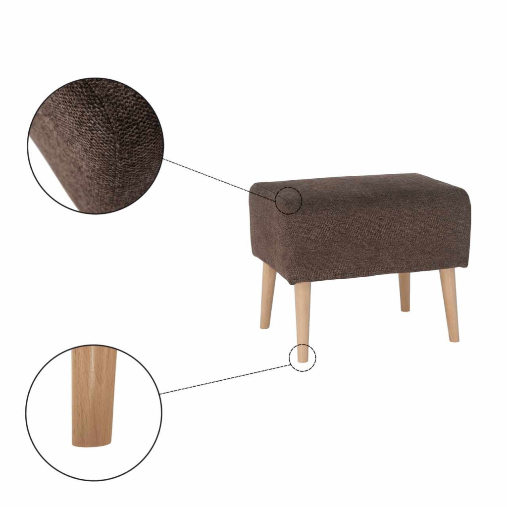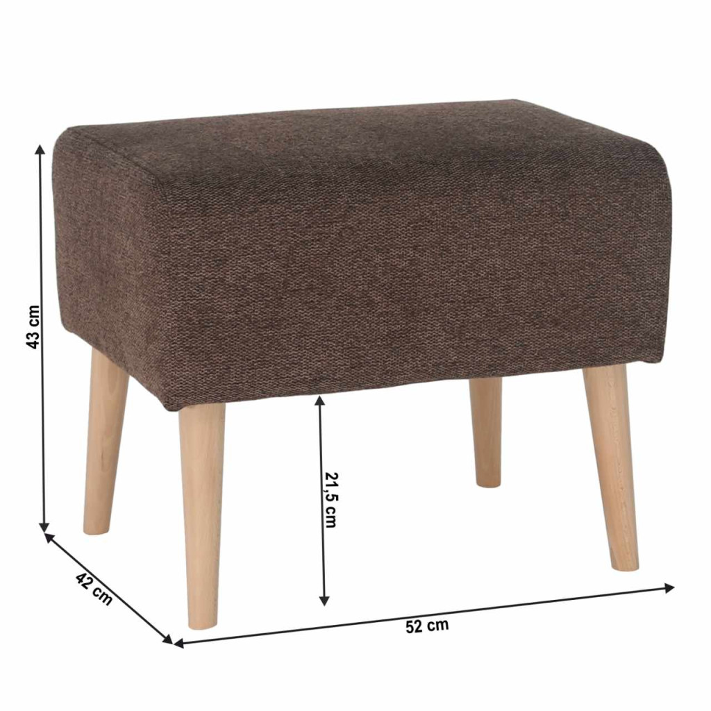 Kárpit anyaga: szövet Matana 19 A szövet kopásállósága a Martindale teszt szerint: 57 000 Kárpit színe: barna Lábak anyaga: fa Lábak színe: tölgy Méretek (SzxMéxMa): 52x42x43 cm Teherbírás egy személyre: 90 kg Súly: 7 kg Alsó rész magassága a padlótól: 21,5 cm Elegáns és luxus kivitelezés Teljesen kárpitozott Egészben szállítva