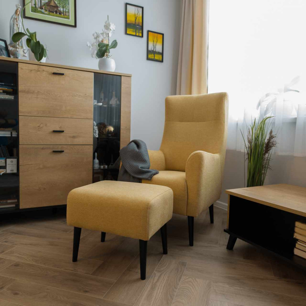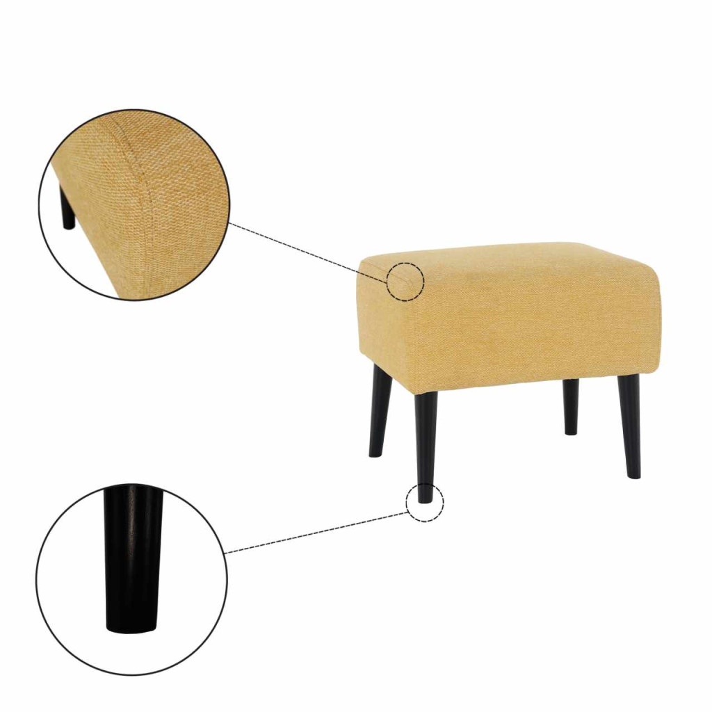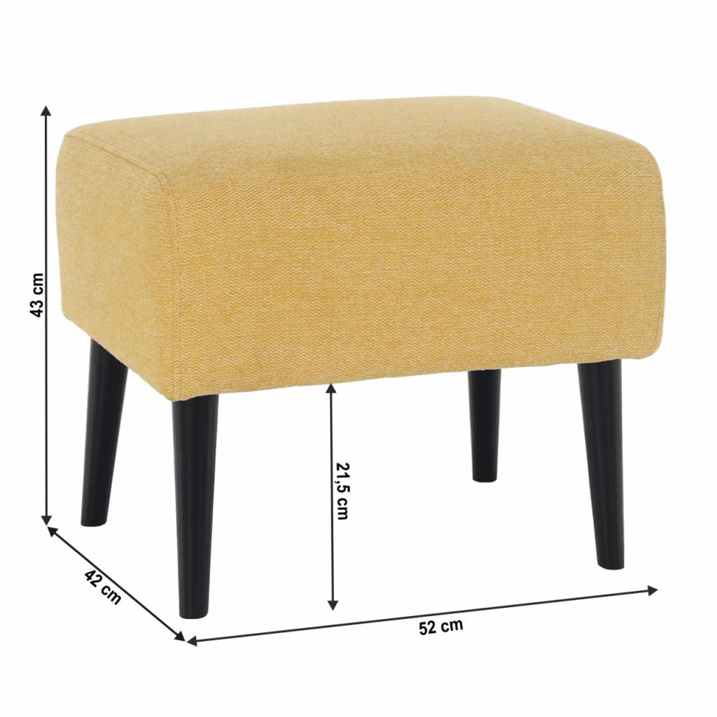 Kárpit anyaga: szövet Matana 09 A szövet kopásállósága a Martindale teszt szerint: 57 000 Kárpit színe: sárga Lábak anyaga: fa Lábak színe: fekete Méretek (SzxMéxMa): 52x42x43 cm Teherbírás egy személyre: 90 kg Súly: 7 kg Alsó rész magassága a padlótól: 21,5 cm Elegáns és luxus kivitelezés Teljesen kárpitozott Egészben szállítva