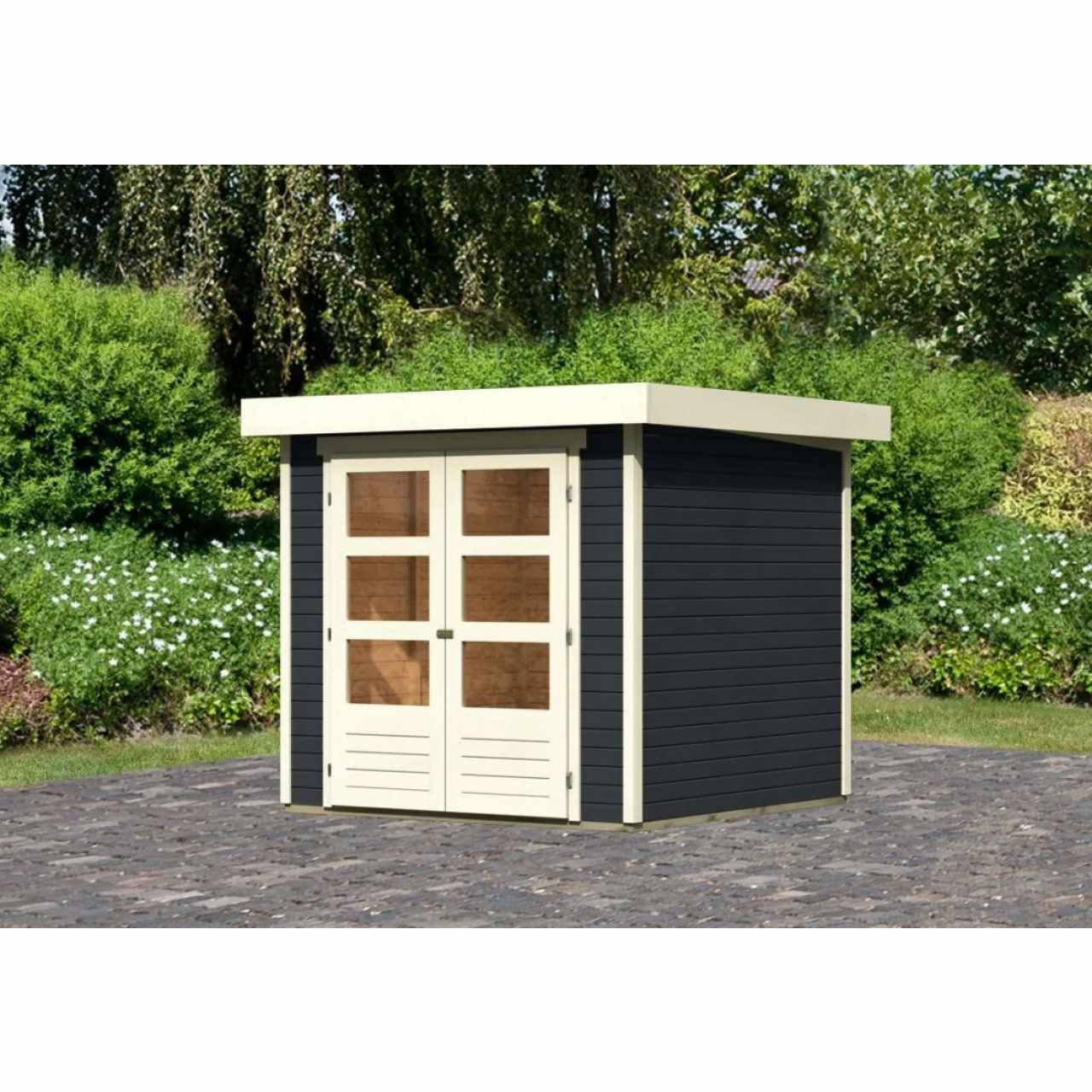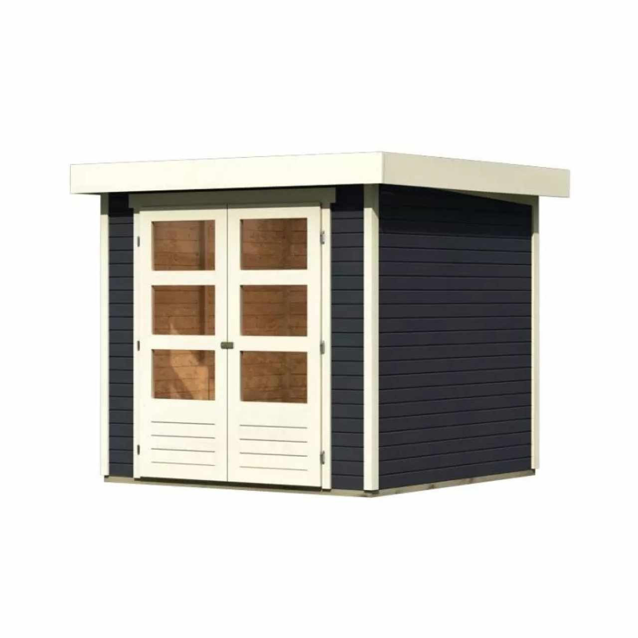 Ezt a házmodellt professzionális KARIBU festékben (antracit) szállítjuk: