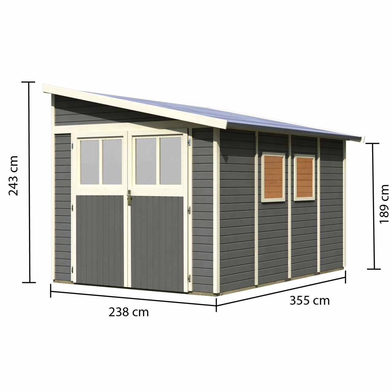 Faház a fal mellett. A házban kerti felszereléseket, szerszámokat tárolhat, vagy barkácsműhelyt építhet. A ház ferde tetővel és egy dupla zsanéros ajtóval rendelkezik, mindkét szárnyban ablakkal. A ház építőanyaga 19 mm vastagságú, északi lucfenyőből tökéletesen mart faprofil. Bontott állapotban készletben szállítjuk, ahol a falak egyedi faprofilokból állnak, amelyeket egyszerűen össze kell rakni és összecsavarozni, a tető egyetlen deszkából. Ez rendkívül egyszerű összeszerelést garantál, amelyet minden ezermester el tud végezni.