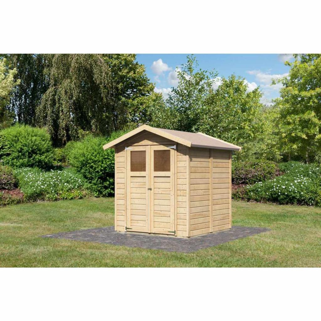 Egy faház alapmodellje kertjébe. Ez a modell nyeregtetővel és dupla csuklós ajtókkal rendelkezik, mindkét szárnyban ablakkal. A ház építőanyaga 14 mm vastagságú, északi lucfenyőből tökéletesen mart faprofil. Bontott állapotban készletben szállítjuk, ahol a falak előre elkészített kisebb panelekből állnak, amelyeket csak össze kell csavarni, a tető pedig egy teljes deszkából. Ez rendkívül egyszerű összeszerelést garantál, amelyet minden ezermester el tud végezni.