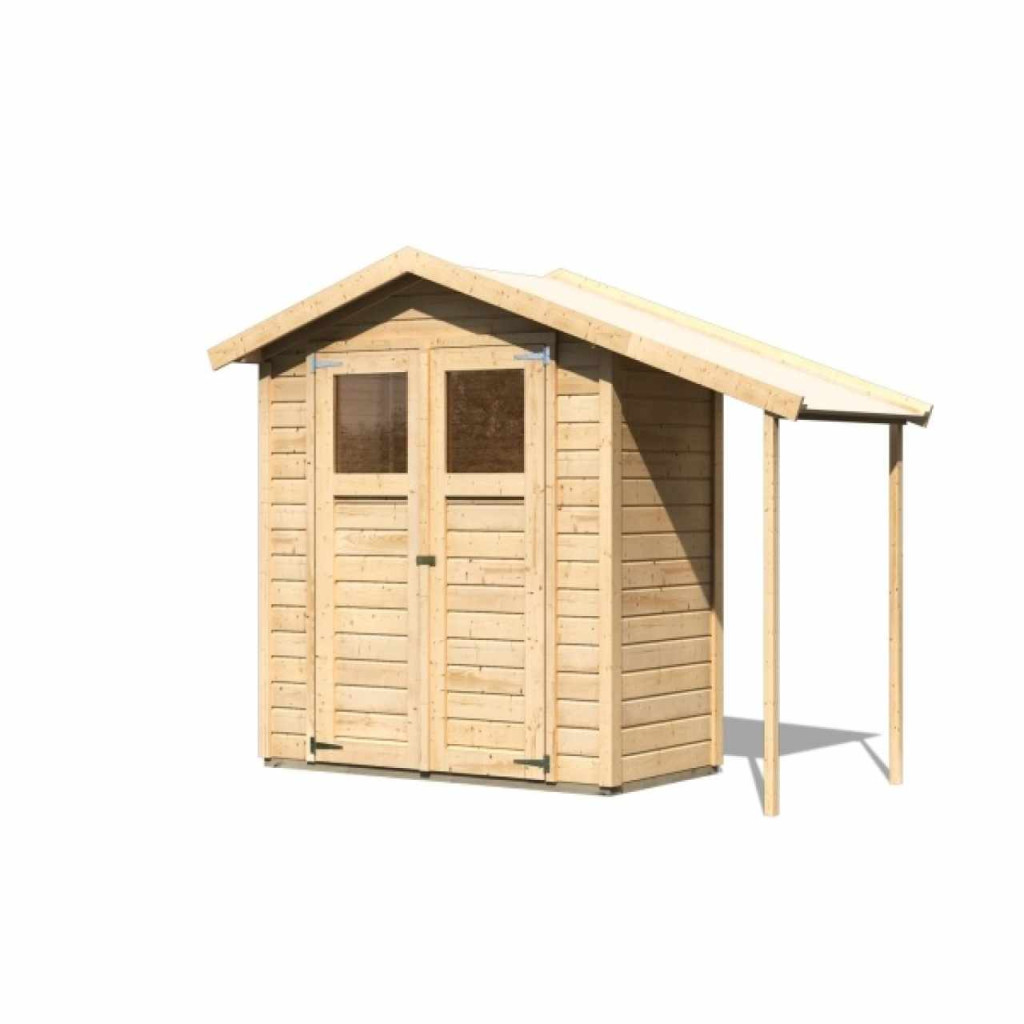Egy faház alapmodellje az Ön kertjébe! Ez a modell nyeregtetővel és dupla csuklós ajtókkal rendelkezik, mindkét szárnyban egy-egy ablakkal. A ház építőanyaga 14 mm vastagságú, tökéletesen frézelt, északi lucfenyőből készült fa profilok. A készletet kibontott készletként szállítjuk, ahol a falak előre gyártott kisebb panelekből állnak, amelyeket csak össze kell csavarozni, a tető pedig egy tömör deszkából áll. Ez garantálja a rendkívül egyszerű összeszerelést, amelyet bármely barkácsoló elvégezhet.