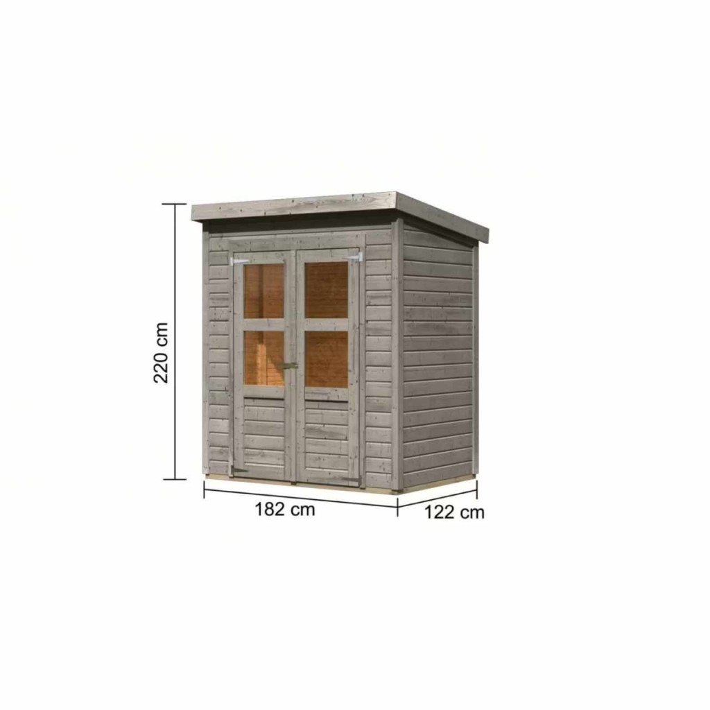 Egy faház alapmodellje kertjébe. Ez a modell lapos tetővel és dupla csuklós ajtókkal rendelkezik, mindkét szárnyban ablakkal. A ház építőanyaga 14 mm vastagságú, északi lucfenyőből tökéletesen mart faprofil. Bontott állapotban készletben szállítjuk, ahol a falak egyedi faprofilokból állnak, amelyeket egyszerűen össze kell rakni és összecsavarozni, a tető egyetlen deszkából. Ez rendkívül egyszerű összeszerelést garantál, amelyet minden ezermester el tud végezni.
