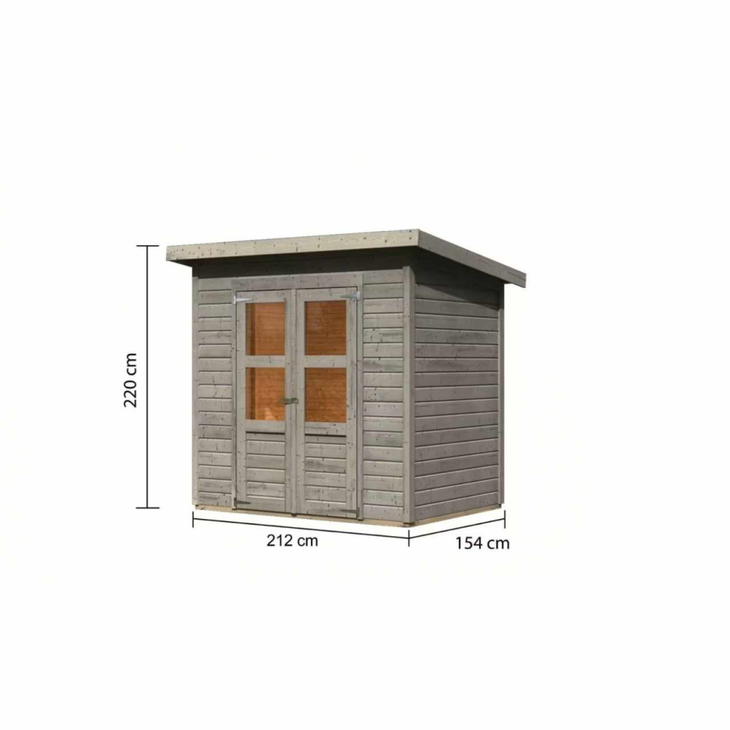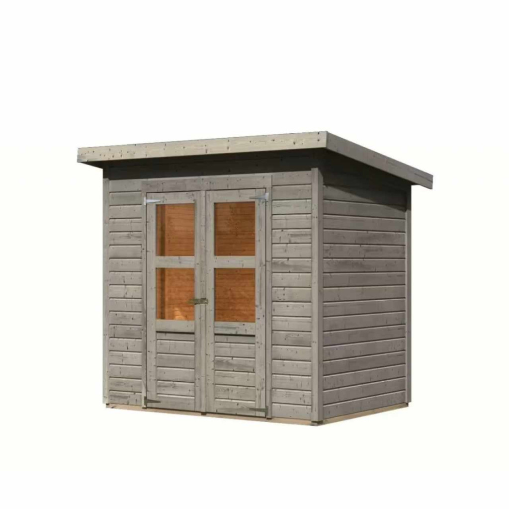 Egy faház alapmodellje kertjébe. Ez a modell lapos tetővel és dupla csuklós ajtókkal rendelkezik, mindkét szárnyban ablakkal. A ház építőanyaga 14 mm vastagságú, északi lucfenyőből tökéletesen mart faprofil. Bontott állapotban készletben szállítjuk, ahol a falak egyedi faprofilokból állnak, amelyeket egyszerűen össze kell rakni és összecsavarozni, a tető egyetlen deszkából. Ez rendkívül egyszerű telepítést garantál, amelyet minden cseh ezermester el tud végezni.