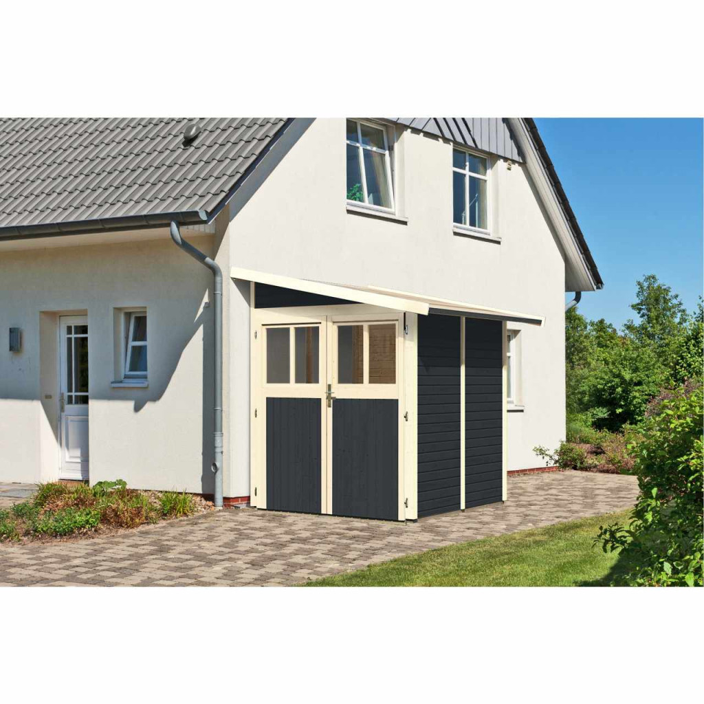Ezt a házmodellt professzionális KARIBU festékkel szállítjuk (RAL 7016 antracit árnyalat)