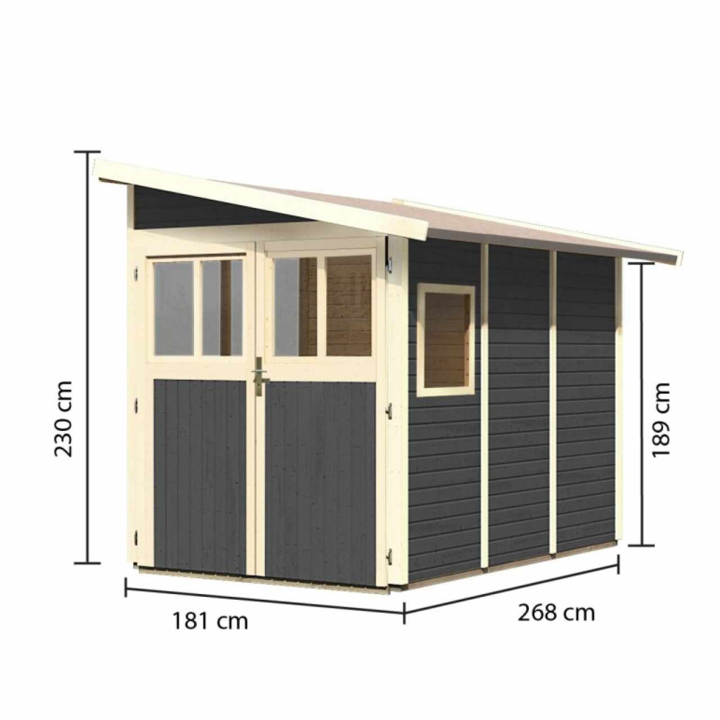 Faház a fal mellett. A házban kerti felszereléseket, szerszámokat tárolhat, vagy barkácsműhelyt építhet. A ház ferde tetővel és egy dupla zsanéros ajtóval rendelkezik, mindkét szárnyban ablakkal. A ház építőanyaga 19 mm vastagságú, északi lucfenyőből tökéletesen mart faprofil. Bontott állapotban készletben szállítjuk, ahol a falak egyedi faprofilokból állnak, amelyeket egyszerűen össze kell rakni és összecsavarozni, a tető egyetlen deszkából. Ez rendkívül egyszerű összeszerelést garantál, amelyet minden ezermester el tud végezni.