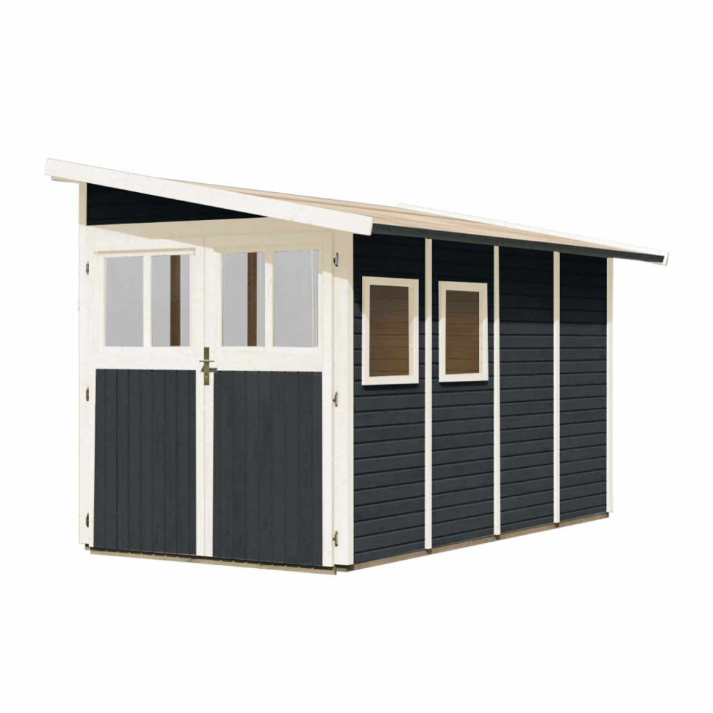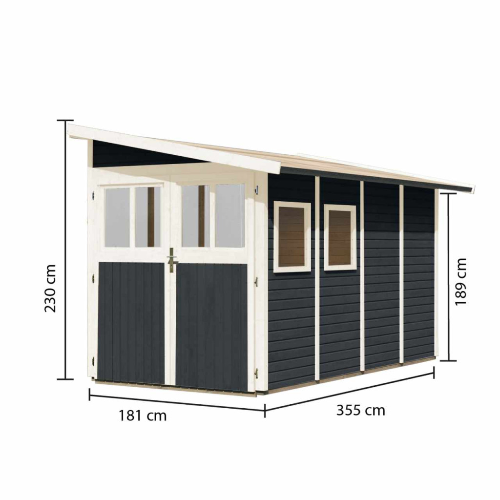 Ezt a házmodellt professzionális KARIBU festékkel szállítjuk (RAL 7016 antracit árnyalat)