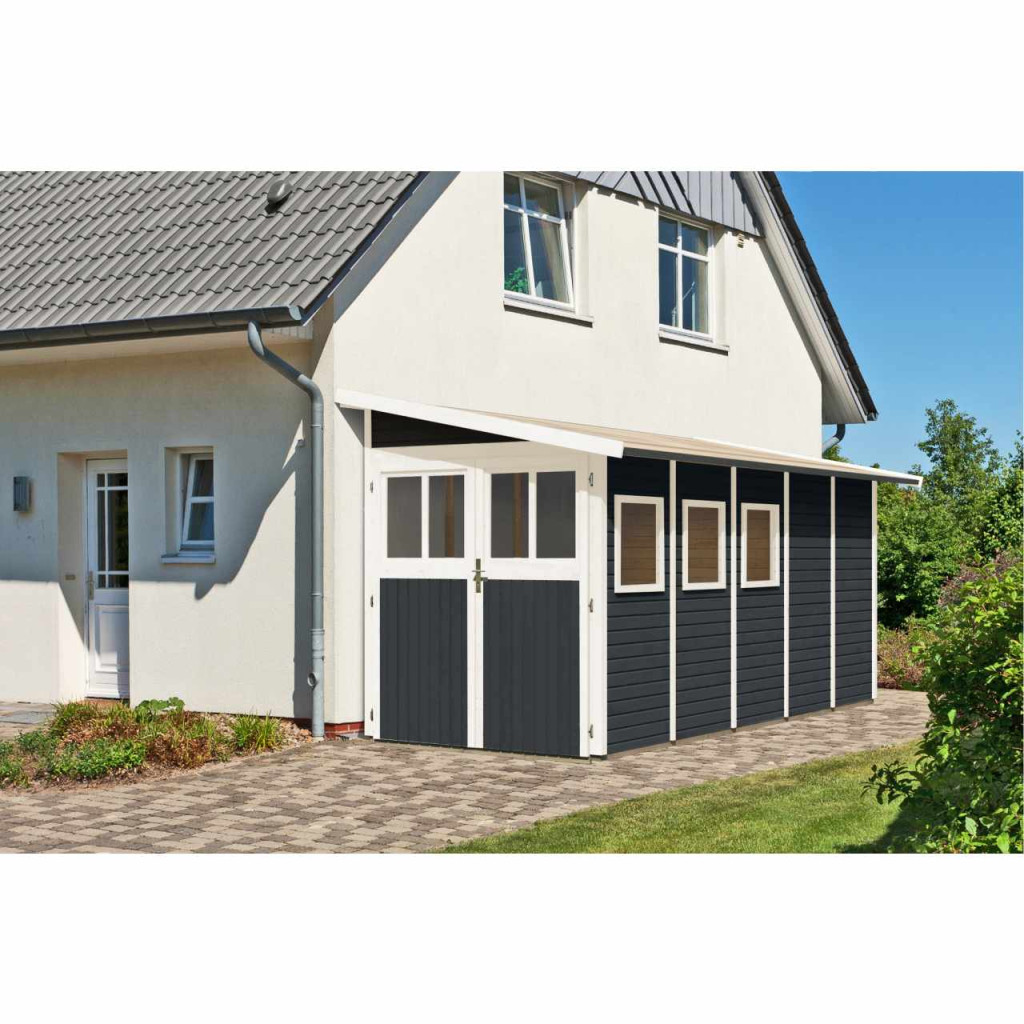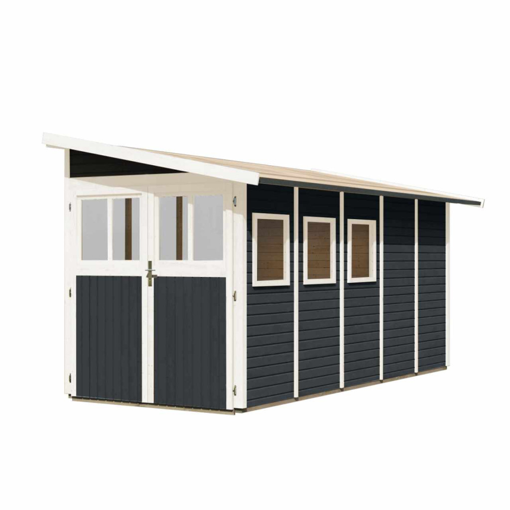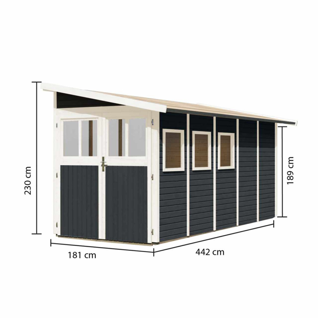 Ezt a házmodellt professzionális KARIBU festékkel szállítjuk (RAL 7016 antracit árnyalat)