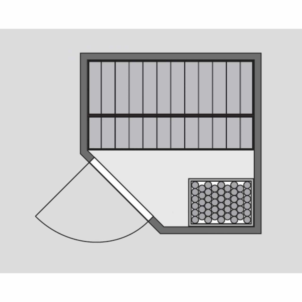 A szaunának nincs saját padlója, kizárólag megfelelő padlóburkolattal, ideális esetben járólappal ellátott helyiségben kell elhelyezni.