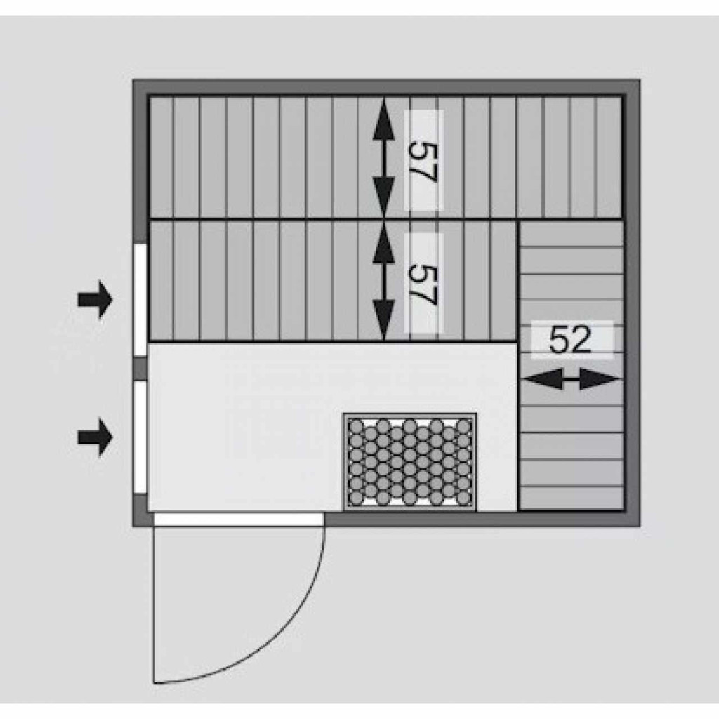 A standard csomag tartalma 3x lucfenyőfából készült pad (2x szélesség 57 cm, 1x szélesség 52 cm, max. 250 kg), 1x fejtámla és fa védőkeret a kályhához. Kínálatunkból további szauna kiegészítőket is ajánlunk.