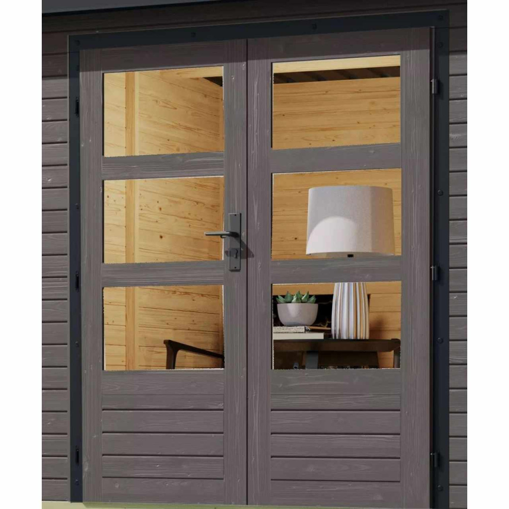 Ezt a házmodellt professzionális KARIBU festékben (terragrau színű RAL 0604005) szállítjuk: