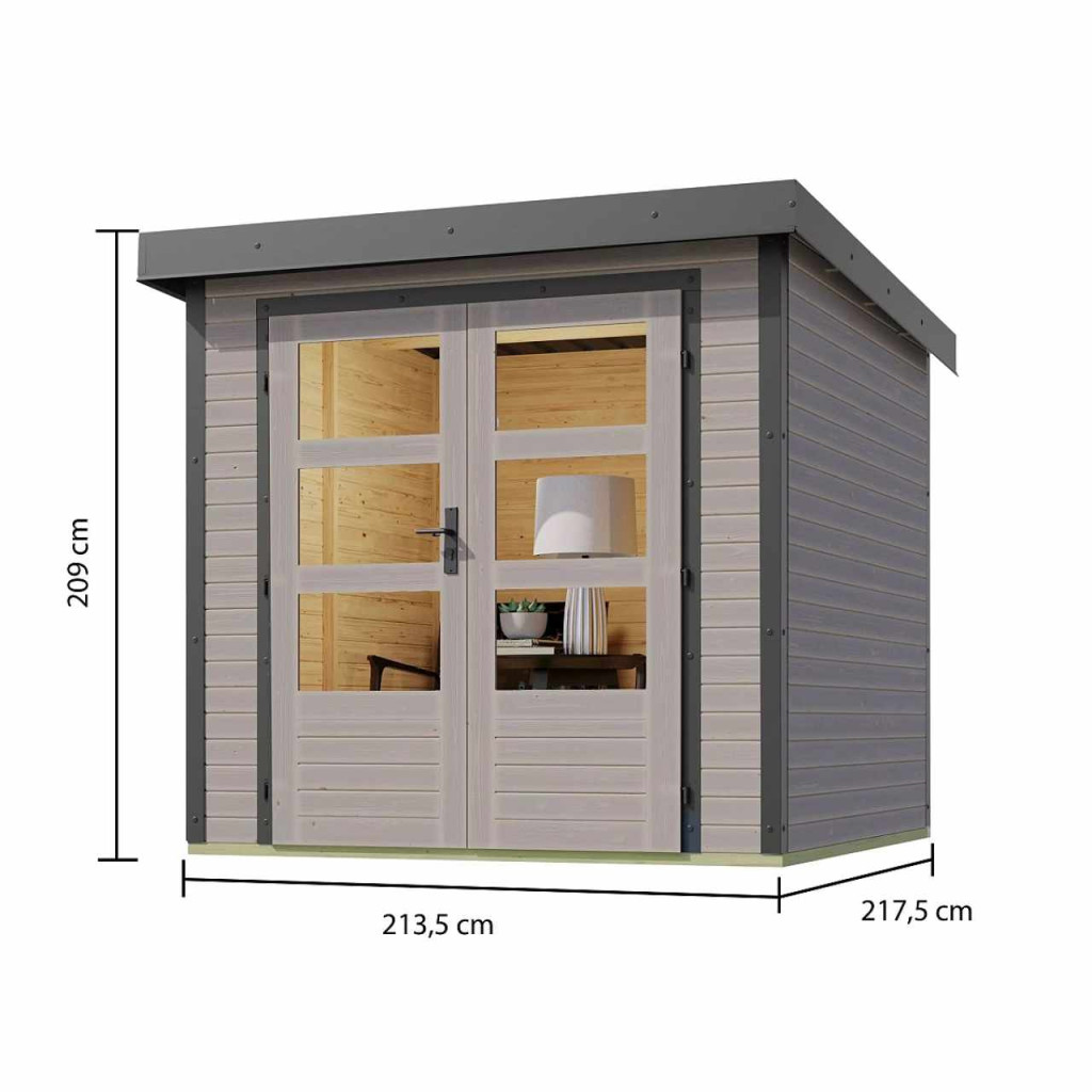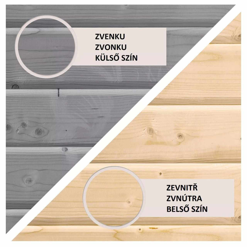 Ezt a házmodellt professzionális KARIBU festékben szállítjuk (világosszürke RAL 360 60 05 árnyalat):
