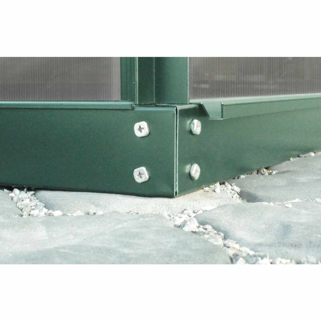 Acél alap üvegházhoz = az üvegház stabilitása és védelme alapozás nélkül