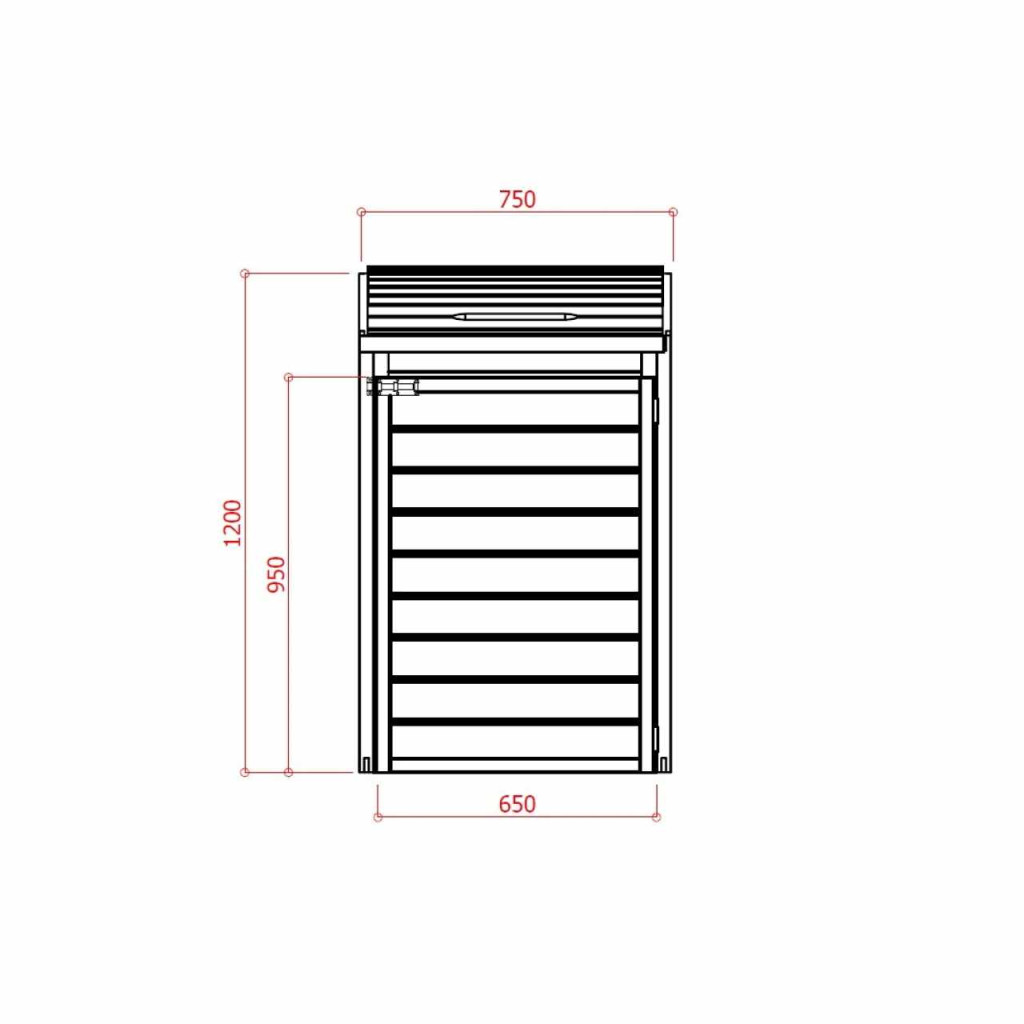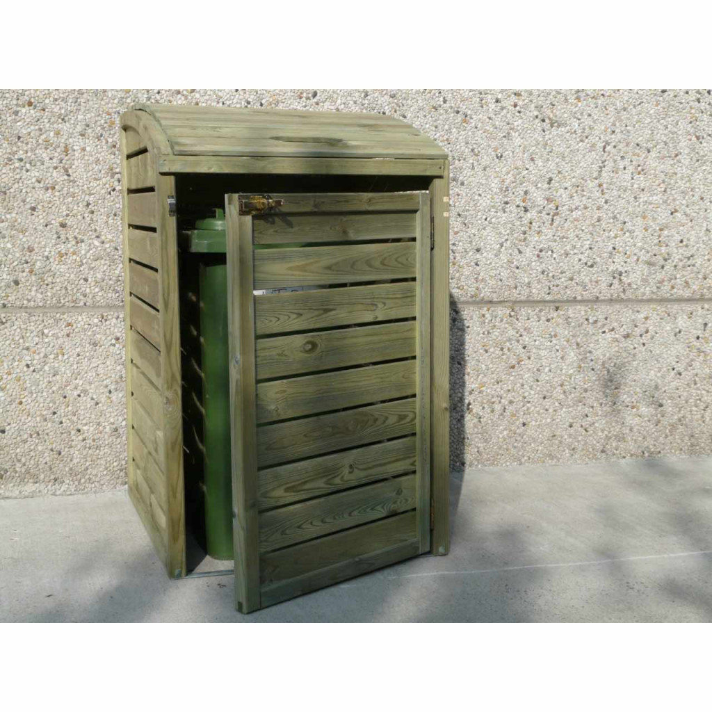 Fából készült tárolódoboz a hulladéktartály fedésére. A fát nyomásálló impregnálással kezelik a penész ellen, de mégis javasoljuk, hogy a kültéri fa megfelelő felületkezelésével kezeljük (az Ön választása szerint).