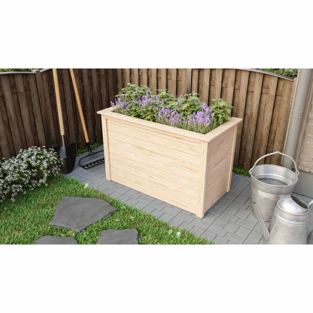 A KARIBU magasított virágágyása tökéletes megoldást kínál növényei elhelyezésére. Legyenek azok virágok, fűszernövények, zöldségek, ezeket szabadon elhelyezheti az ágyásban. Kényelmes, 82 cm-es magassága nem fog gondot okozni a hátának, mivel ez minimálisra csökkenti a megerőltető hajolást. Az emelt ágyás 19 mm vastag, nút/horony rendszerben összehajtott faprofilokból áll. A virágágyás belsejében műanyag fólia található. A gyárilag festett ágyást semmilyen módon nem kell kezelni, ezáltal azonnal használható. Mindazonáltal mi javasoljuk, hogy használat előtt a natúr dizájnt kültéri fához megfelelő felületkezeléssel kezelje (választása szerint) - pl. gombaellenes bevonat. Magaságyás talajrétegezésekor javasoljuk, hogy a talaj szerkezetét a növényeihez igazítsa.