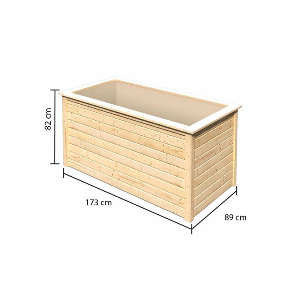 Magaságyás KARIBU, sze 173 x m 89 x ma 82 cm, fa 19 mm vastag, a virágládának nincs alja.