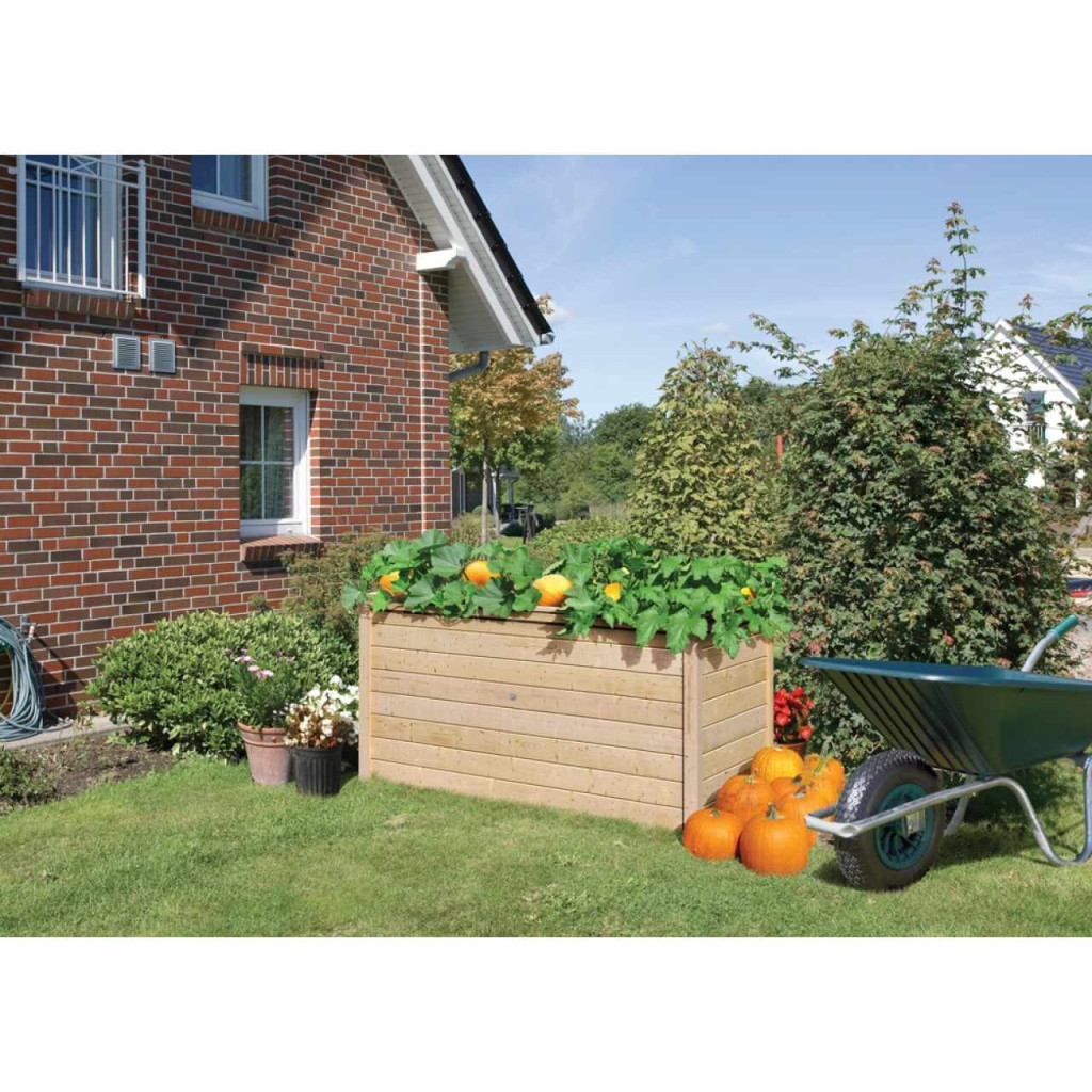 A KARIBU magasított virágágyása tökéletes megoldást kínál növényei elhelyezésére. Legyenek azok virágok, fűszernövények, zöldségek, ezeket szabadon elhelyezheti az ágyásban. Kényelmes, 82 cm-es magassága nem fog gondot okozni a hátának, mivel ez minimálisra csökkenti a megerőltető hajolást. Az emelt ágyás 19 mm vastag, nút/horony rendszerben összehajtott faprofilokból áll. A virágágyás belsejében műanyag fólia található. A gyárilag festett ágyást semmilyen módon nem kell kezelni, ezáltal azonnal használható. Mindazonáltal mi javasoljuk, hogy használat előtt a natúr dizájnt kültéri fához megfelelő felületkezeléssel kezelje (választása szerint) - pl. gombaellenes bevonat. Magaságyás talajrétegezésekor javasoljuk, hogy a talaj szerkezetét a növényeihez igazítsa.